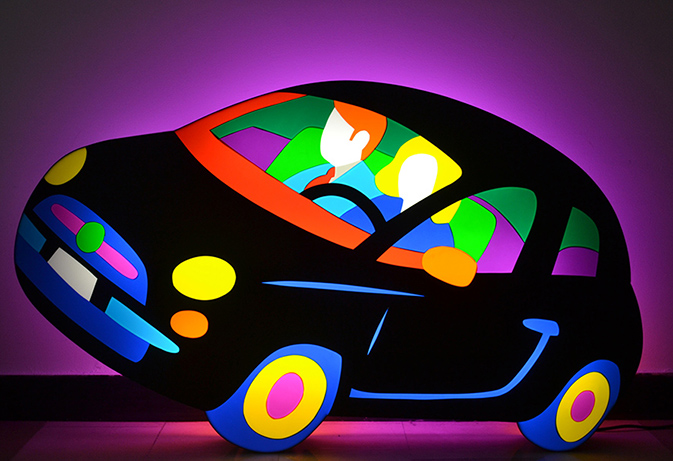 Sculture monumentali, “quadri elettrici” – come recita il titolo – e light boxes, grandi tele, iute e sericollages. Ci sono tutte le forme e i colori che caratterizzano l’arte di Marco Lodola – uno dei più quotati artisti italiani in attività, fondatore del Nuovo Futurismo. Ci sono pin up, musicisti e sportivi, automobili e moto, ballerini: espressione di “immediatezza e istinto”, di quella “velocità” che Lodola ama catturare ed esprimere con le sue opere. Plexiglass, perspex, smalti e neon, figure sfavillanti e talvolta evanescenti, ripetute all’infinito in complicate scenografie, che rimandano al mondo più patinato e pop della televisione, dello spettacolo, di un universo urbano e moderno, ma con echi di classicità. E la luce, sempre, come un flusso vitale, essenziale: “i colori – dice Lodola – non si vedrebbero senza luce”.