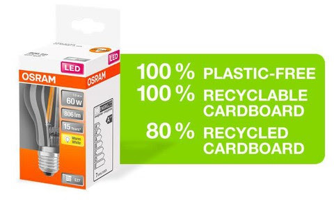L’azienda di illuminazione sta introducendo confezioni prive di plastica per le lampade Led a marchio Osram