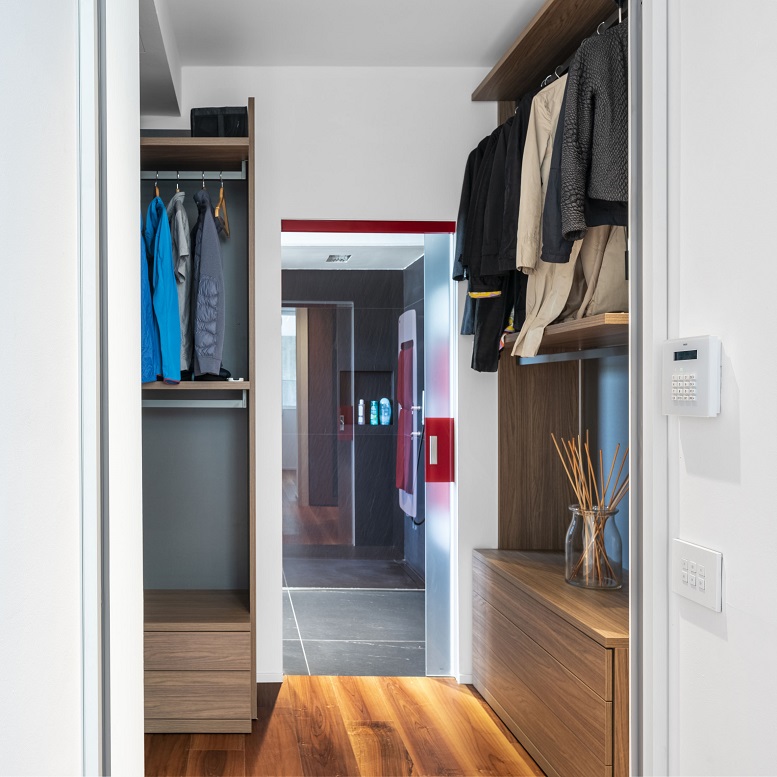 Con Eikon Exé la materia inoltre diventa intelligente. Questo grazie alla tecnologia del sistema domotico By-me Plus, scelto per permettere un controllo totale dell’intera abitazione, coordinando varie funzioni come l’illuminazione, il clima, la videocitofonia, l’antintrusione e la diffusione sonora. Tutto può essere controllato da un unico punto, il touch screen da 7 pollici posizionato vicino all’ingresso, oppure stanza per stanza, grazie appunto ai comandi Flat in versione domotica, dotati di retroilluminazione RGB personalizzabile.