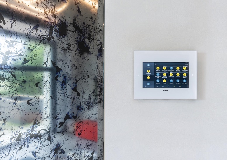 Ma anche via device, attraverso l’app View. È infatti grazie a questa che i due giovani proprietari possono personalizzare e controllare tutte le funzioni presenti all’interno dell’abitazione – dal comfort alla sicurezza e all’efficienza energetica -, creare degli scenari, gestire l’antintrusione, ricevere videochiamate e notifiche sullo stato degli impianti, anche da remoto.