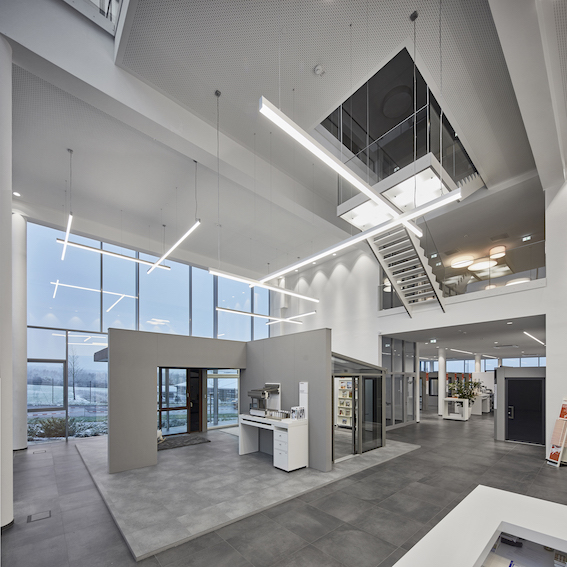 Lo sviluppo opportuno dei volumi e l’incremento del comfort abitativo nell’arco delle 24 ore sono il risultato di una gestione intelligente dell’elemento che la natura ci ha messo a disposizione e che l’uomo, attraverso il progresso tecnologico, ha saputo ricreare e personalizzare: l’illuminazione. PERFORMANCE iN LIGHTING è stata scelta quale azienda partner per l’illuminazione del nuovo centro clienti Finstral di Gochsheim.