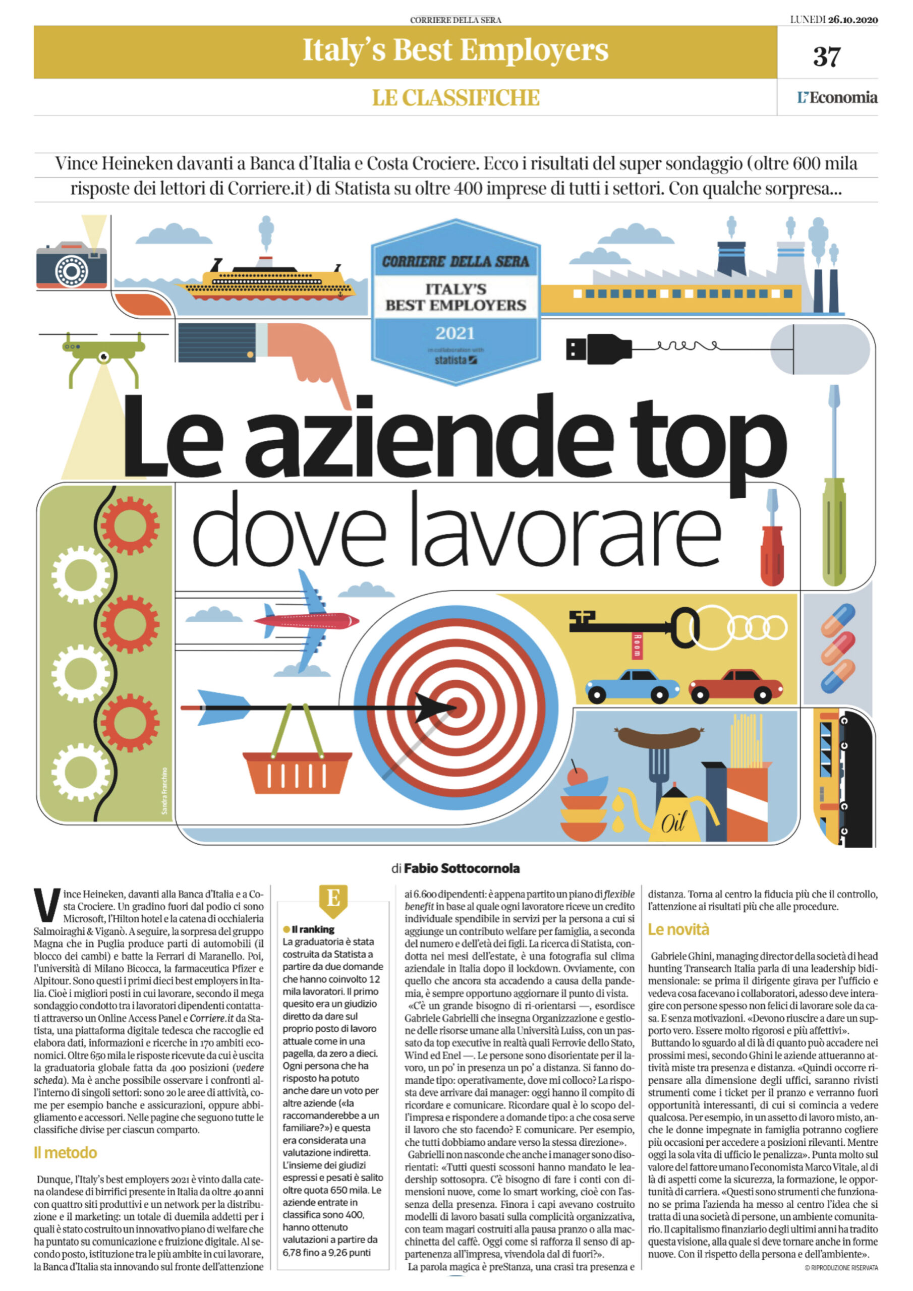 Per saperne di più su “Italy’s Best Employers 2021”: https://www.corriere.it/economia/aziende/cards/aziende-migliori-dove-andare-lavorare/birra-banca_principale.shtml