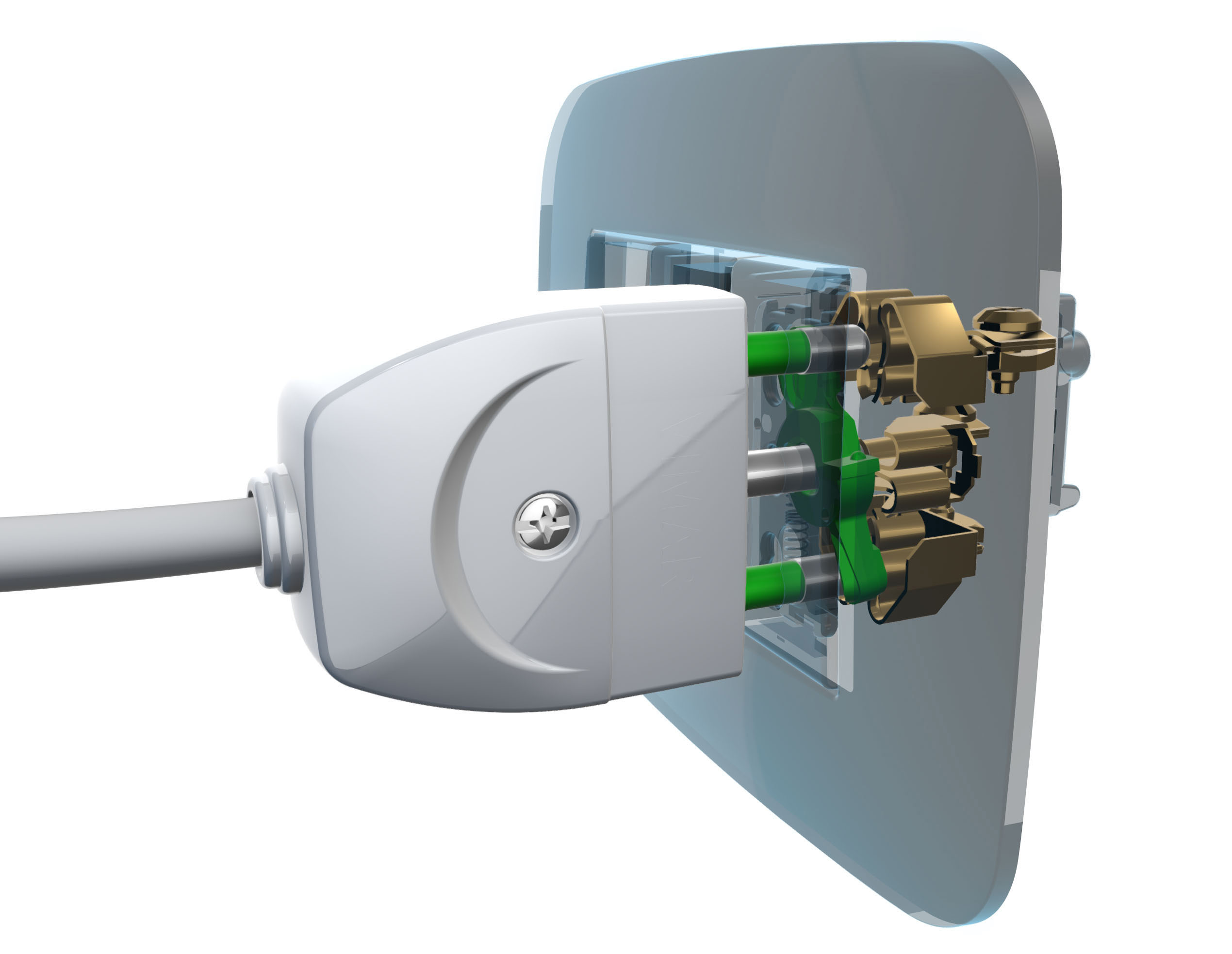 Sicury è un otturatore rotante a forma di elica in materiale plastico che chiude dall’interno i fori della presa impedendo l’accesso diretto di qualsiasi oggetto. Solo se sollecitato dalla pressione di una spina contemporaneamente su entrambi i lati, l’otturatore ruota su sé stesso aprendo i fori della presa e permettendo così il contatto elettrico. Qualsiasi altro oggetto non è quindi in grado di aprire l’otturatore e di arrivare alle parti in tensione.