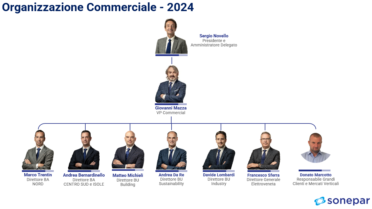 I direttori delle BA e delle BU, il Responsabile Grandi Clienti e Mercati Verticali e il Direttore Generale di Elettroveneta riporteranno a Giovanni Mazza VP Commercial.