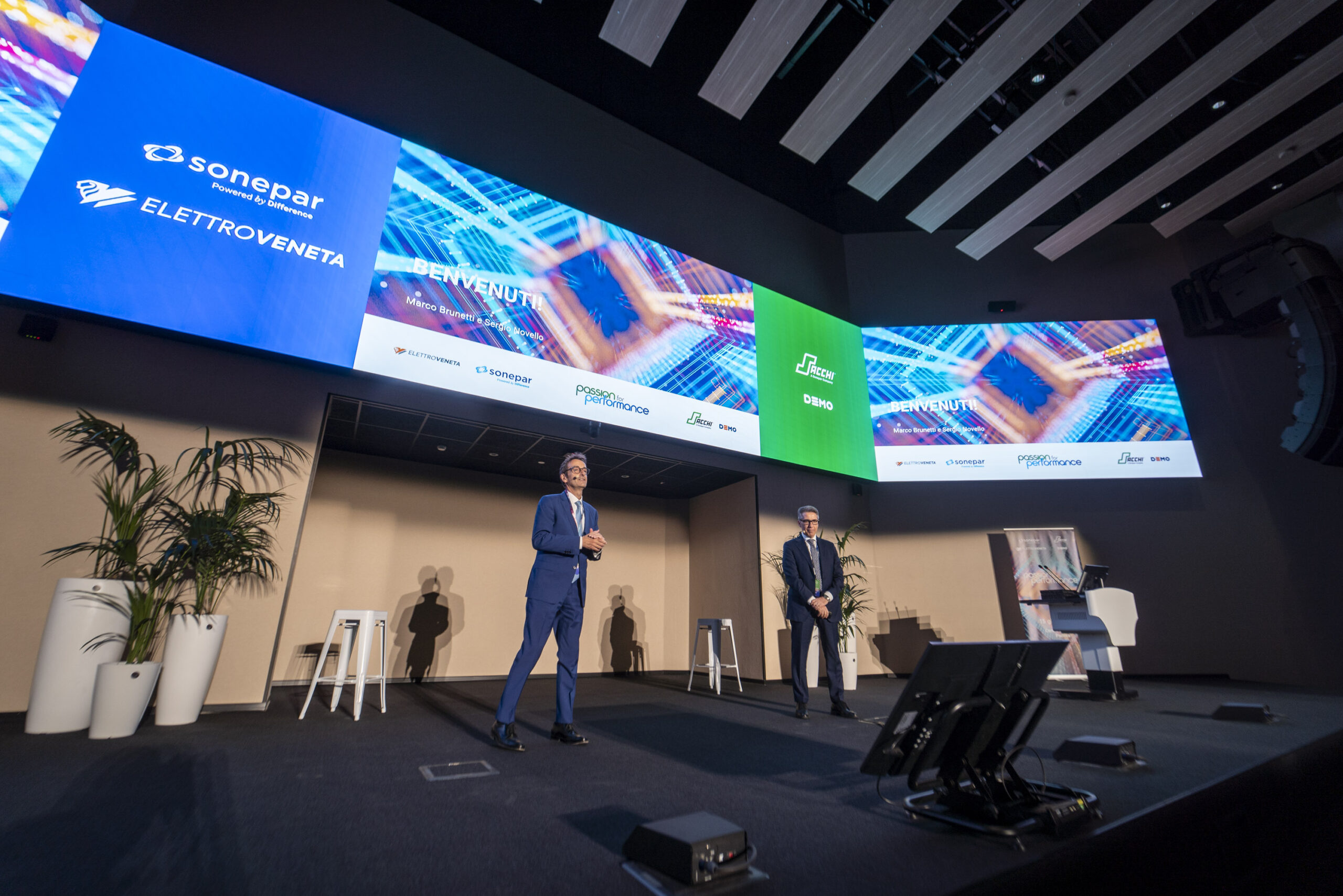 Circa 300 persone, rappresentanti di 130 aziende partner, hanno ascoltato gli interventi sul palco di Patrick Salvadori, Presidente Sonepar per l’Europa Occidentale e Sud America, dei due AD, Sergio Novello di Sonepar Italia e Marco Brunetti del Gruppo Sacchi e dei Direttori Marketing, Acquisti e Relazione Fornitori, Supply Chain rispettivamente di Sonepar Italia e del Gruppo Sacchi.