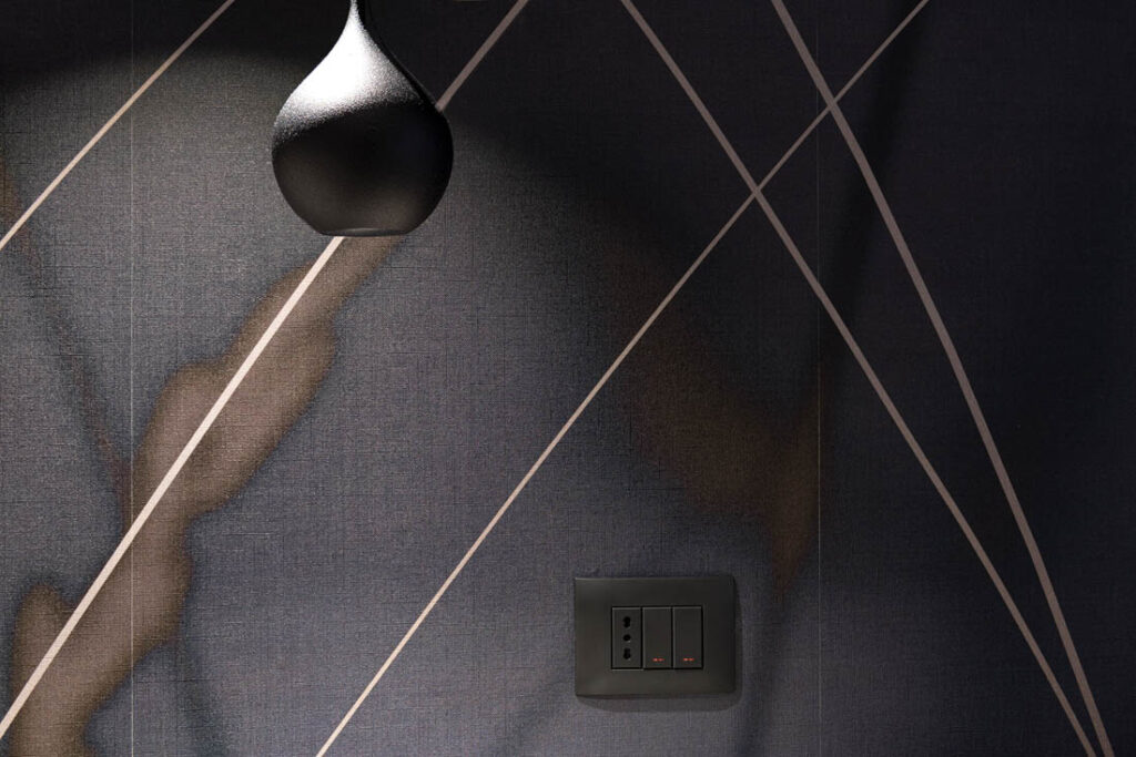 L’attenzione ai dettagli si ritrova anche negli altri elementi che compongono l’impianto. La tonalità scura che contraddistingue la serie civile Tekla 44 si integra perfettamente con l’arredamento circostante, aggiungendo un tocco di eleganza e modernità ad ogni ambiente. La finitura opaca dona profondità e carattere agli spazi, mentre la qualità costruttiva garantisce prestazioni affidabili nel tempo.