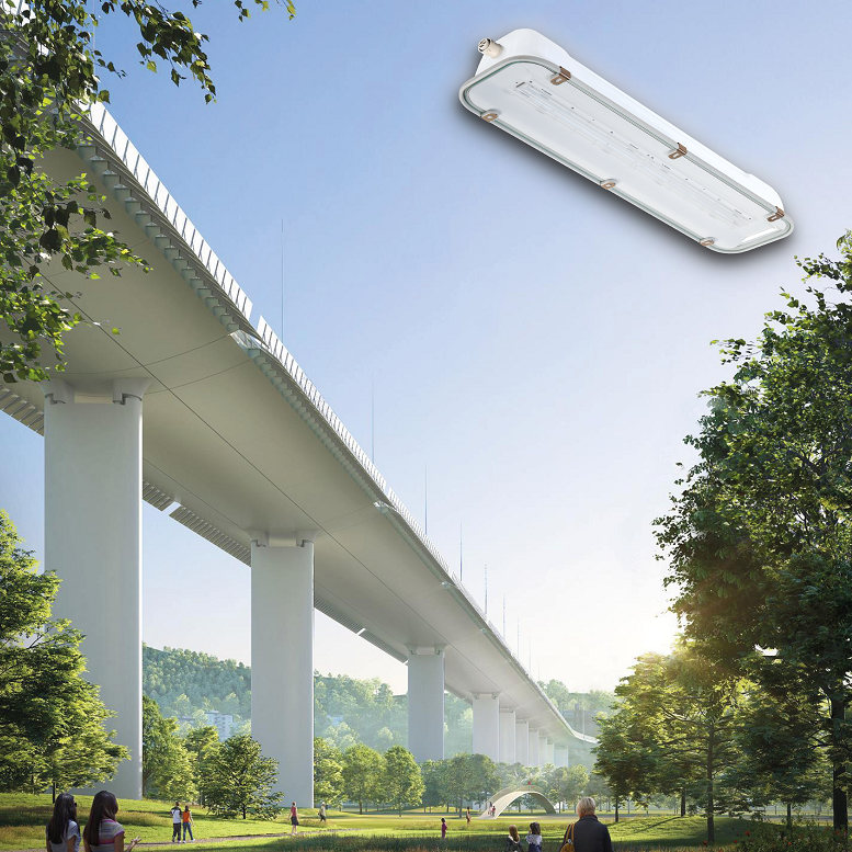 Per illuminare queste “gallerie” che corrono lungo il ponte, Palazzoli ha collocato 1.000 delle sue plafoniere serie Rino Led, progettate con l’aiuto delle tecnologie più moderne. Un involucro inossidabile per resistere alle vibrazioni, alla corrosione e alle atmosfere più aggressive. Vetro temperato per mantenere costante nel tempo la luminosità.