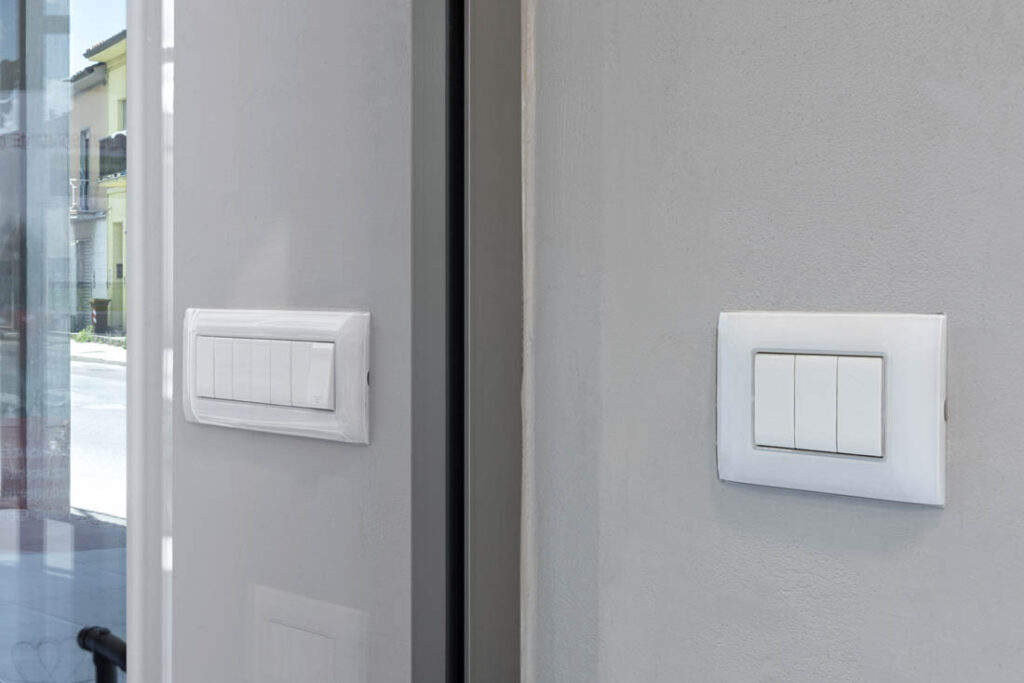 La parte visibile dell’impianto elettrico realizzato esibisce un look total white. Gli elementi della serie civile Domus 100 sono i protagonisti, abbinati alle placche della serie Young 44, caratterizzate da un design slim in tecnopolimero. Nei punti di maggiore visibilità sono state installate le versioni Young Touch, che si distinguono per i comandi a sfioro e la retroilluminazione Led.