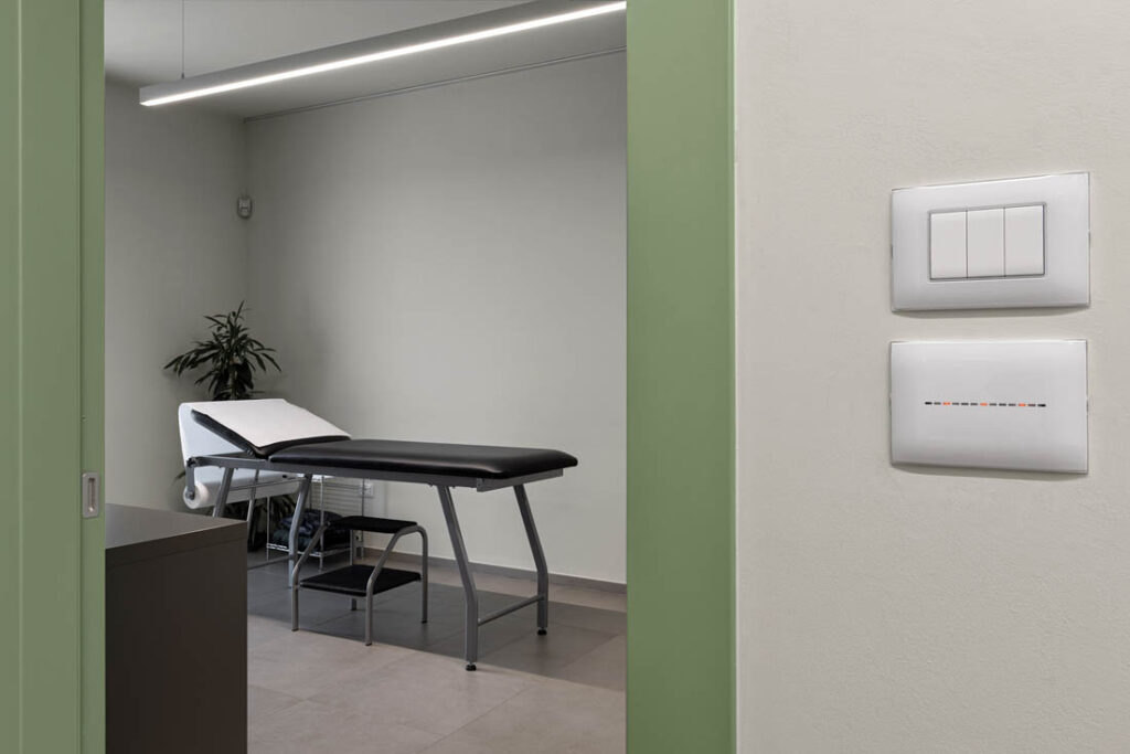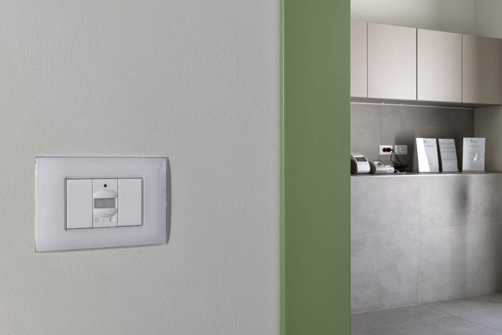La parte visibile dell’impianto elettrico realizzato esibisce un look total white. Gli elementi della serie civile Domus 100 sono i protagonisti, abbinati alle placche della serie Young 44, caratterizzate da un design slim in tecnopolimero. Nei punti di maggiore visibilità sono state installate le versioni Young Touch, che si distinguono per i comandi a sfioro e la retroilluminazione LED.