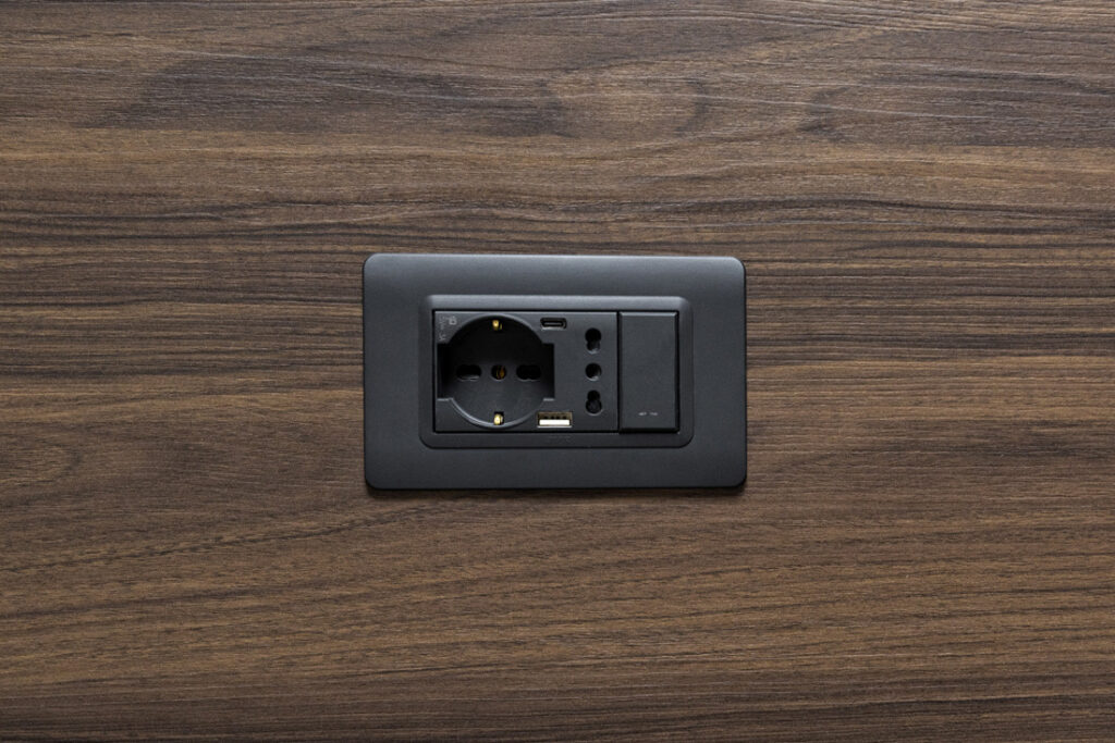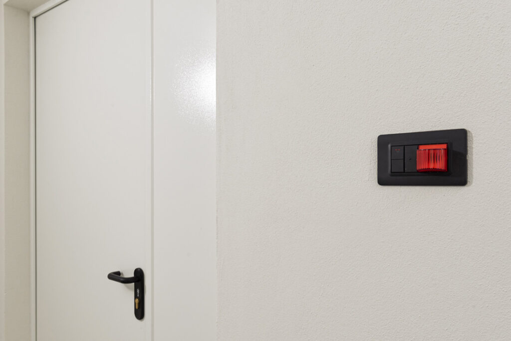 Ad una tecnologia all’avanguardia si abbina un’estetica minimale ma elegante, che valorizza l’impianto elettrico e le sue funzioni. Gli elementi della serie civile Tekla 44 con placche Tecnopolimero abbinate si distinguono grazie al loro color grigio con finitura opaca, integrandosi armoniosamente con gli ambienti della struttura.