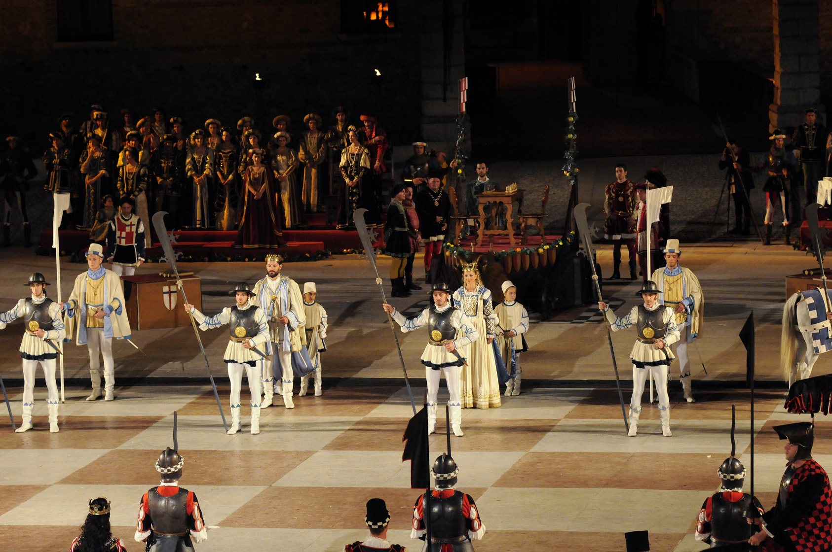 Qui oltre seicento figuranti in costume storico rievocano – in una suggestiva cornice di giochi di luce, acrobati, giocolieri e sbandieratori – la sfida che, leggenda vuole, due valorosi cavalieri affrontarono per ottenere la mano di una giovane dama, da conquistare non con la spada ma con il nobile gioco degli scacchi.