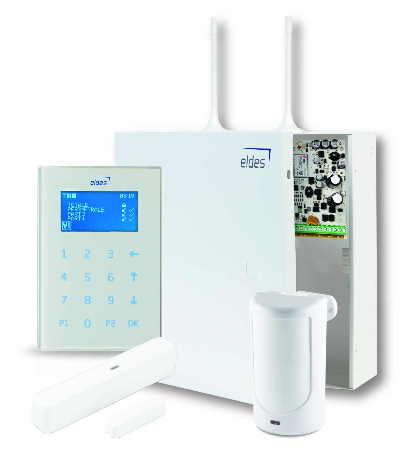 ESIM384 è una centrale a microprocessore a 64 dispositivi senza fili con 8 zone cablate a bordo (16 con la funzione di duplicazione zone), espandibile fino a 144 zone di cui 64 senza fili. Questa centrale permette di collegare fino a 4 tastiere LCD a sfioramento o LED dal design moderno ed elegante, disponibili nei colori bianco e nero. Con una memoria di 1000 eventi e la possibilità di programmare fino a 30 codici utenti, la centrale ESIM384 permette la suddivisione dell’impianto in 4 aree indipendenti con area comune. Grazie al modulo GSM/GPRS integrato, è possibile l’invio di chiamate vocali e SMS fino a 10 numeri telefonici con messaggio vocale registrabile. La programmazione, semplice e veloce, può avvenire localmente e da remoto tramite software ELDES Config Tool e SMS. L’App permette l’integrazione di 4 telecamere IP/WiFi Dahua. In linea con più specifiche esigenze degli utenti, la centrale ESIM384 permette di integrare nel sistema di sicurezza interessanti funzioni di domotica, quali il controllo delle luci, degli elettrodomestici e del riscaldamento. Un altro vantaggio della centrale ESIM384 e più in generale dell’intera gamma è la possibilità di accedere gratuitamente agli interessanti servizi cloud offerti da ELDES.