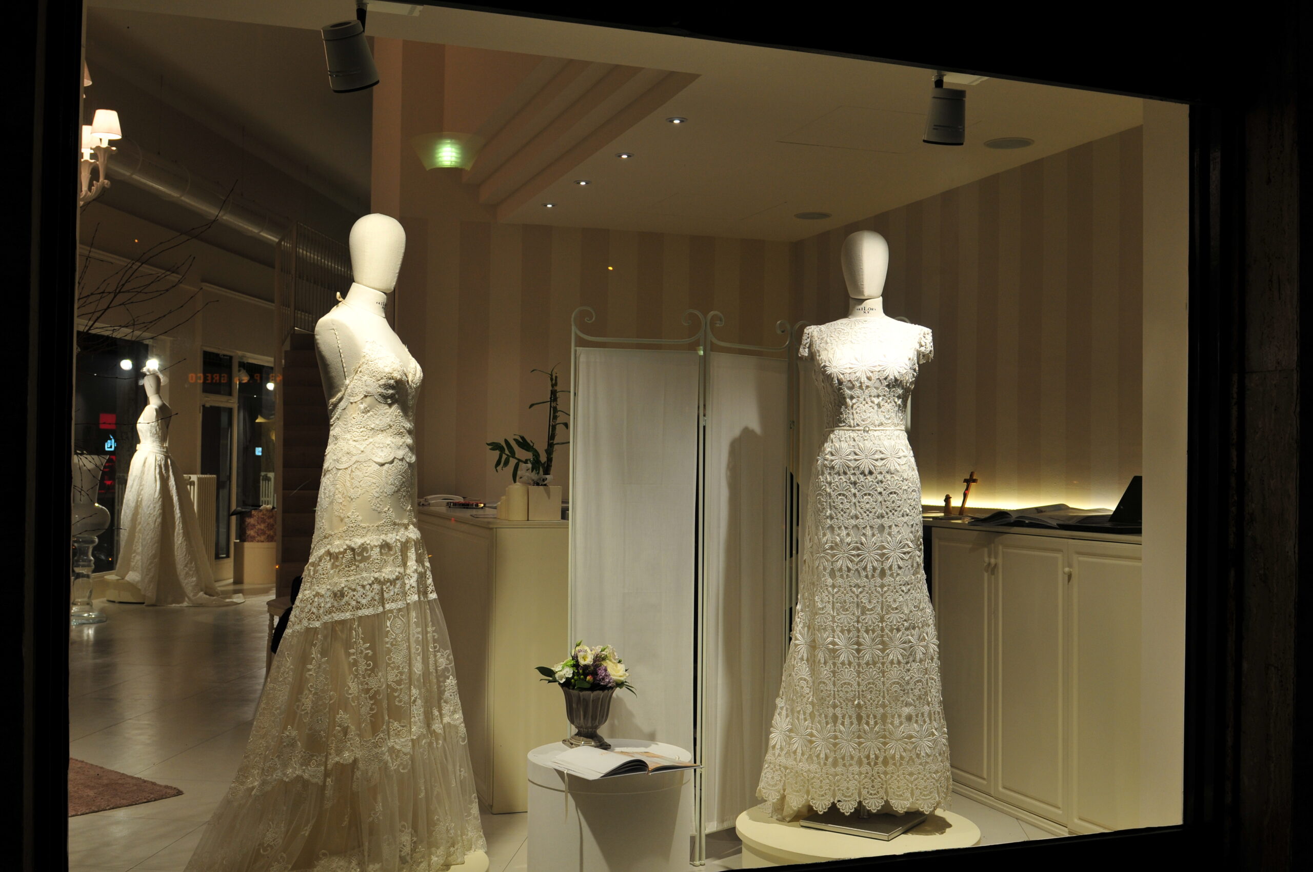 Un’ultima doverosa nota per quanto concerne l’indice di resa cromatica, la vecchia Ra ora chiamata CRI. Vale qui ricordare solo che il CRI (Color Rendering Index) rappresenta l’indice di resa cromatica di una fonte luminosa. Tanto più il CRI si avvicina al valore 100, tanto più la veridicità della sua luce si avvicina ai colori naturali. Oggi un ottimo risultato viene raggiunto con un CRI uguale o superiore a 80, ma sul mercato vi sono lampade con CRI >95. Se il cliente ha un esercizio in cui il colore è determinante (cosmesi, abiti e accessori, tessuti) vi suggeriamo di fare delle prove prima di orientarsi su costosissimi CRI 95. La predominanza di colori freddi o caldi in associazione alla temperatura di colore adatta (i famosi 3000K, luce calda, a 4000K in su, luce fredda) possono con un CRI sopra gli 80 essere sufficienti se non addirittura migliori. Specificare cosa state vendendo ai vostri clienti e perché, vi mette al riparo da pericolose comparazioni di prezzo o successive recriminazioni sul risultato. (le foto dell’articolo sono state scattate nei negozi “Sposa Milano” illuminati da Fabas). (articolo di Maria Genoni).