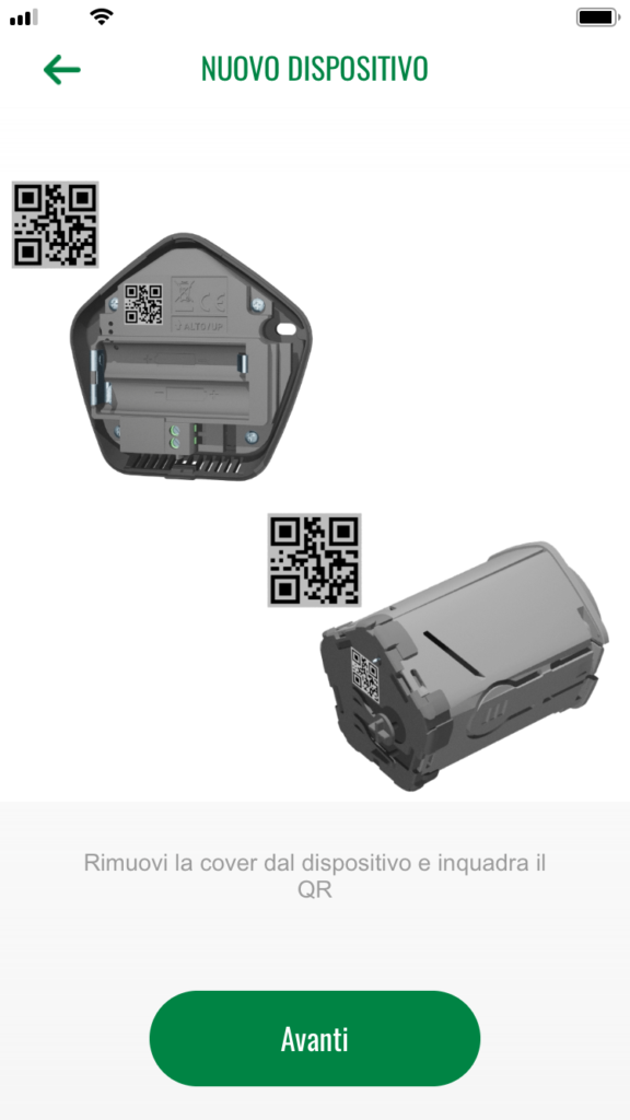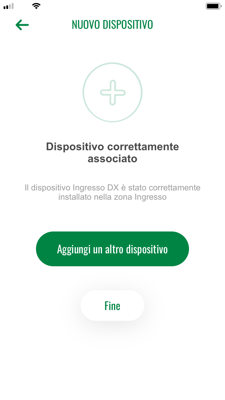 Sull’App è presente un indicatore di batteria per ogni dispositivo e in caso di batteria quasi scarica si presenta l’allarme.