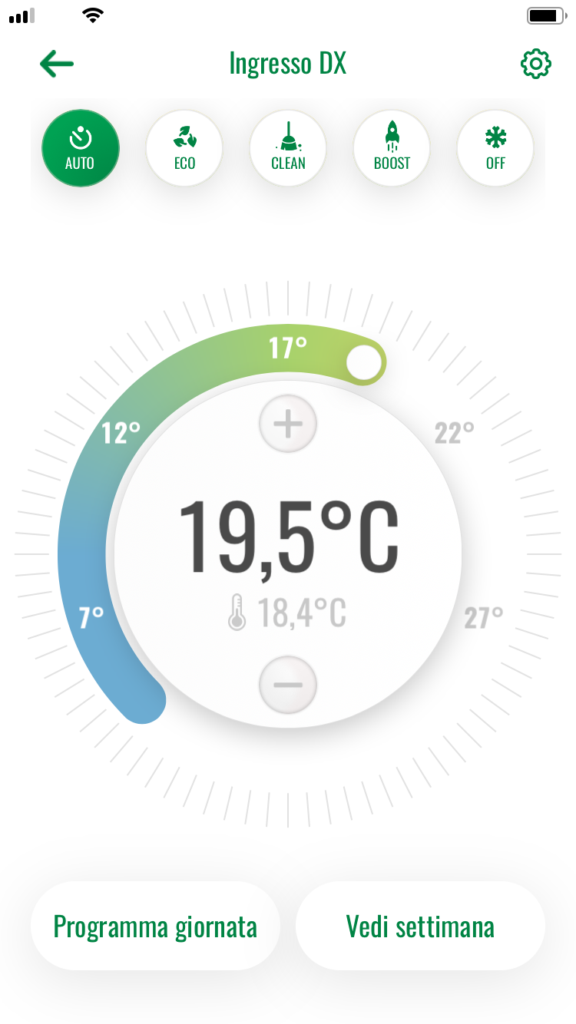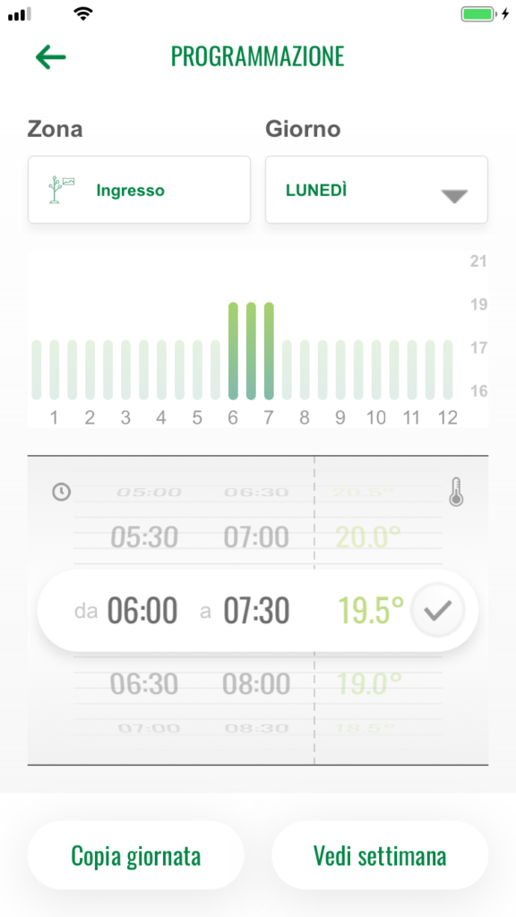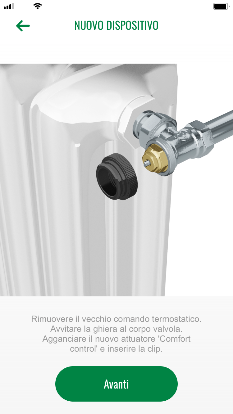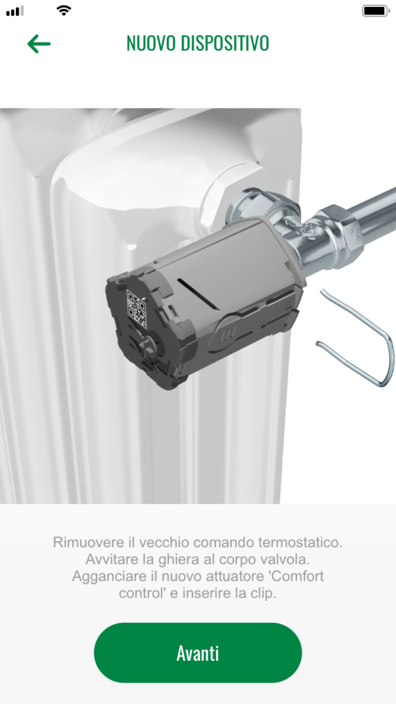 Il sistema si installa da smartphone o tablet, come illustrato nel box “LA POSA IN OPERA”. È possibile effettuare l’associazione con i dispositivi tramite connessione Wi-Fi oppure, se non disponibile, mediante hotspot generato dal Gateway. L’installazione termina con la fase di programmazione che permetterà di creare un programma a fasce orarie, personalizzato e definito in base al comfort desiderato, attraverso semplici domande (Wizard) relative alle abitudini dell’utente.