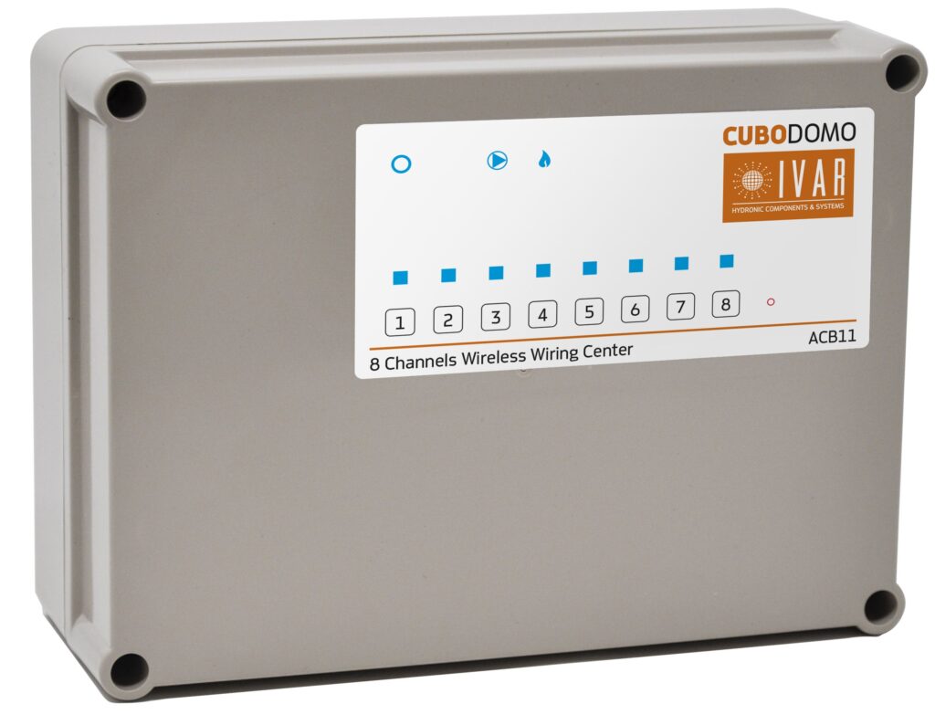 Il cronotermostato multizona CUBODOMO di IVAR è la soluzione che permette di gestire le funzioni principali dell’impianto di riscaldamento e raffrescamento direttamente da smartphone e tablet. Fornito insieme ad alimentatore e sonda di temperatura dotata di relè, il Cubo va semplicemente alimentato, collegato alla rete internet grazie al suo modulo Wi-Fi integrato, quindi interfacciato a smartphone e/o tablet tramite l’App MyCUBODOMO. Una sua caratteristica peculiare è la possibilità di integrarsi sia con i sistemi di riscaldamento a radiatori – gestendo le valvole motorizzate posizionate su ciascun termosifone – che con gli impianti di riscaldamento/raffrescamento radiante, o mediante un attuatore a relè per impianti radianti semplici oppure con un wiring center: quest’ultimo consiste in una scheda di interfaccia ad 8 relè, in grado di gestire 8 zone in modo indipendente tramite sonde wireless, che evitano opere murarie e cablaggi.