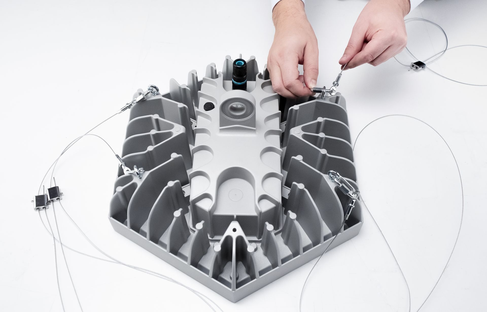 «Grazie ai diversi accessori d’installazione disponibili, l’applicazione di ESALITE per tutti i tipi di contesti e supporti diventa veloce e pratica. Catene e sospensioni golfari per l’installazione a soffitto, paletto e staffa per applicazioni a parete, paletto e picchetto per applicazioni a terra. Un innovativo giunto cardanico brevettato, inoltre, consente di muovere l’apparecchio e di orientarlo con un solo gesto. Un’unica vite con dado quadrato autobloccante muove, sui due assi cartesiani, l’orientamento del prodotto con un sistema a chiusura dentata a garanzia del serraggio. Proprio grazie allo speciale giunto cardanico ESALITE può essere installato e orientato con estrema precisione e facilità».