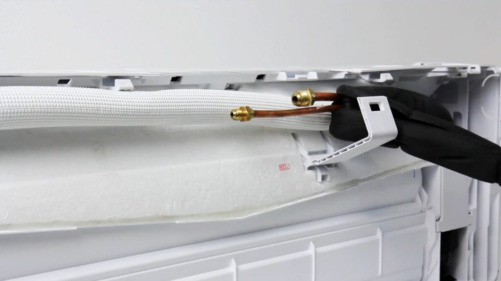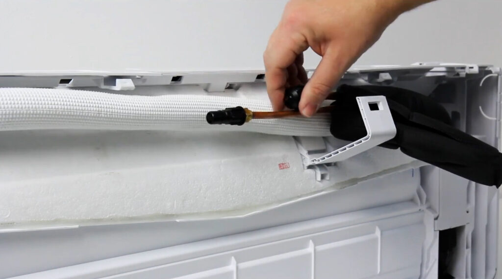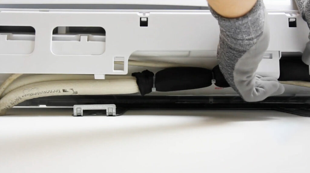 Per il collegamento elettrico tra unità interna ed esterna, inserire il cavo nel lato posteriore dell’unità interna ed estrarlo dal lato frontale. Controllare attentamente che vengano rispettati i numeri indicati nelle morsettiere elettriche al fine di prevenire malfunzionamenti. È bene, inoltre, assicurarsi sempre che il climatizzatore sia collegato al conduttore di messa a terra e che venga installato a monte un adeguato interruttore magnetotermico differenziale.