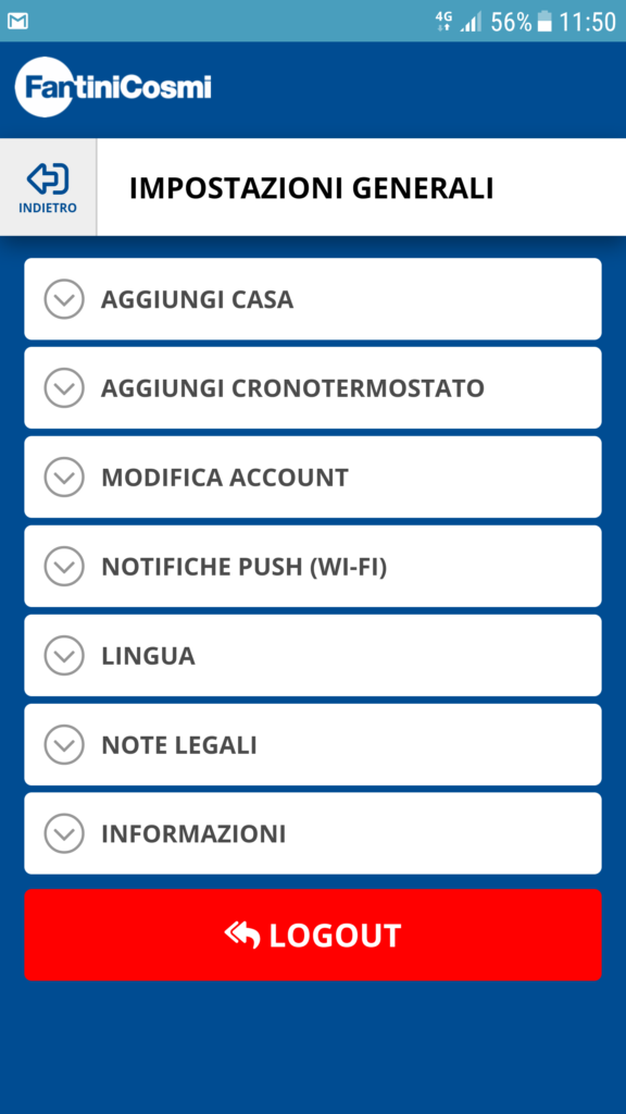 Il cronotermostato va installato a parete o su scatola a incasso, a 3 moduli o rotonda, a un’altezza di circa 1.5 m dal pavimento, in una posizione idonea a rilevare correttamente la temperatura dell’ambiente. Collocare gli attuatori wireless O60RF privi di batterie nella zona corretta, sui radiatori; i medesimi accorgimenti valgono per i termostati secondari CH120RF. Alimentare il cronotermostato e impostare la modalità [MAN], ossia il programma manuale, quindi inserire le batterie nei termostati e negli attuatori. Per controllare il cronotermostato CH180RFWIFI con smartphone o tablet, effettuare il download dell’app Intelliclima+. Per installarla, consultare il foglio d’istruzione del CH180RFWIFI, scaricabile dal sito web https://www.fantinicosmi.it/documenti. Intelliclima+ è disponibile gratuitamente su App Store e Google Play.