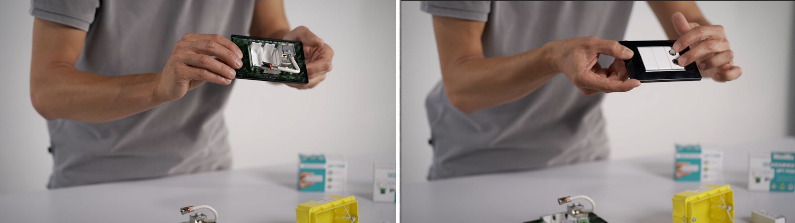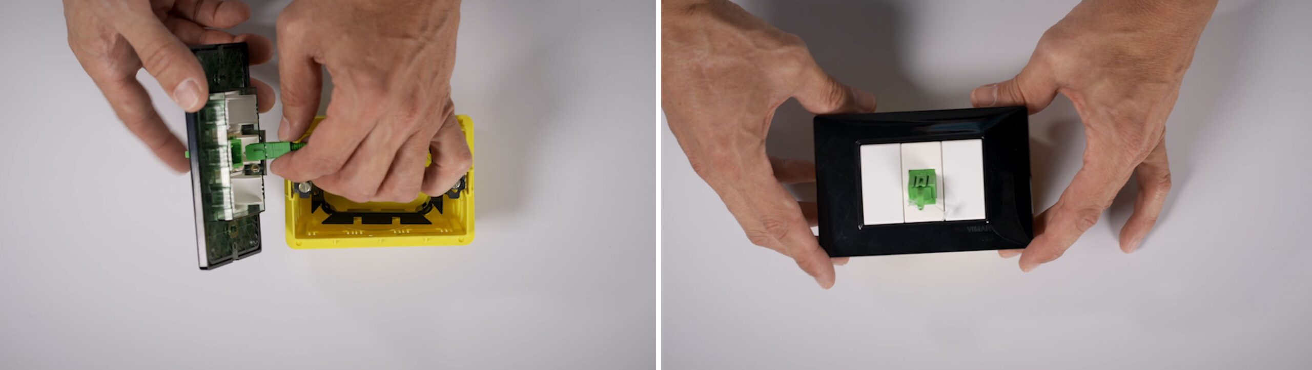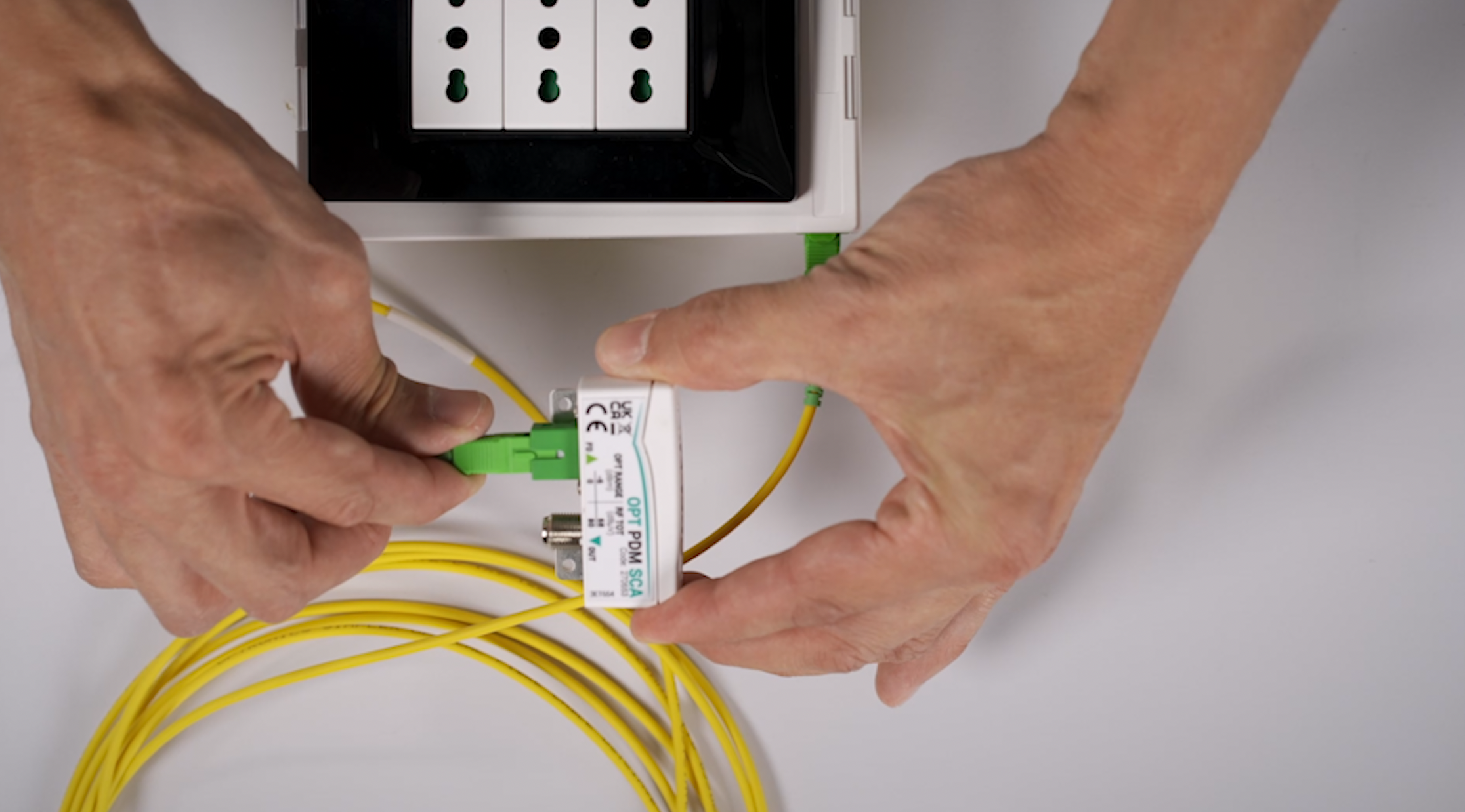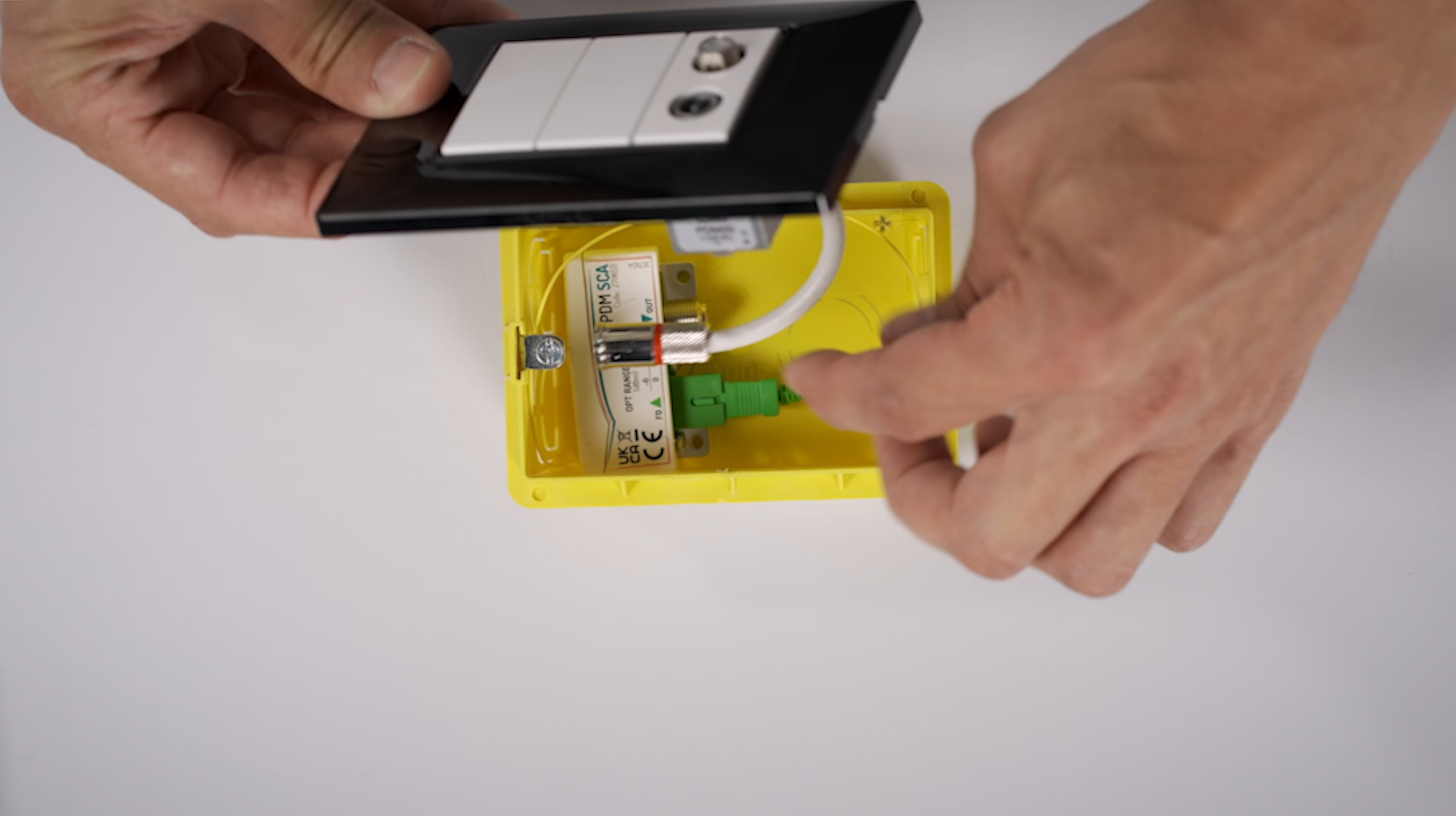 Se installati in scatola da incasso, la fibra ottica in arrivo dal quadro di distribuzione di appartamento sarà collegata direttamente al ricevitore ottico miniaturizzato e il segnale sarà trasformato in elettrico per essere fruibile tramite il connettore coassiale della presa. Nel caso l’impianto sia realizzato completamente in fibra ottica, il ricevitore OPT-PDM potrà essere collegato alla presa civile con una bretella ottica SC/APC e al televisore con un cavo coassiale: questa applicazione ha il vantaggio di essere molto flessibile perché, grazie al ricevitore ottico miniaturizzato, l’apparecchio televisivo può essere collegato a qualsiasi presa dell’abitazione.