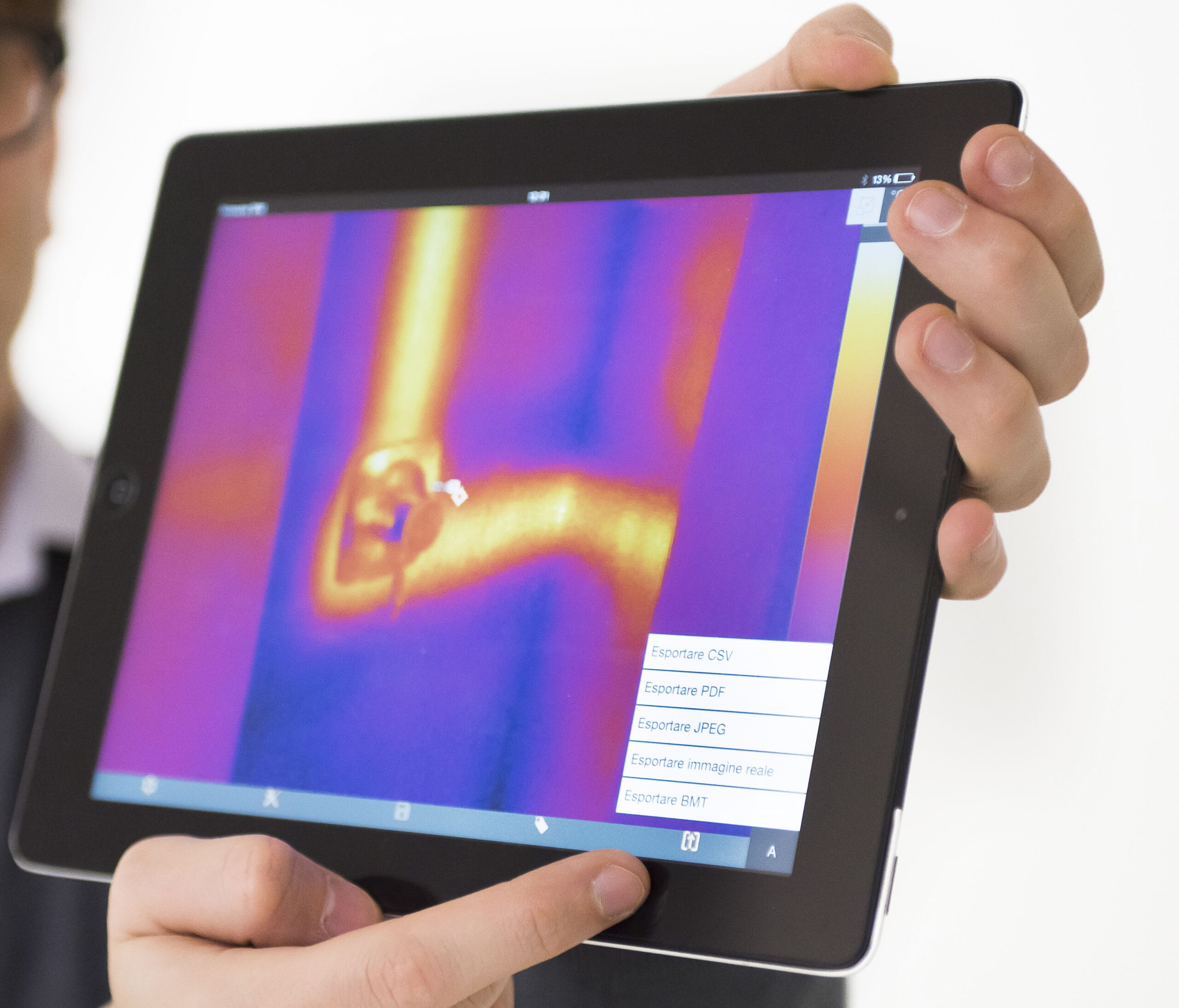 Per approcciare correttamente all’argomento-termocamera, occorre tenere conto di quattro aspetti. L’indicatore IFOV, espresso in mrad, permette di sapere cosa si può misurare con precisione da una determinata distanza. Il campo di misura indica il range di temperature entro il quale l’apparecchio “vede”: quello della testo 871 raffigurata nelle immagini, compreso tra -30 e 650 gradi, rileva molte problematiche che altri apparecchi entry level semplicemente ignorano. Il campo visivo FOV, nel caso specifico 35×26 gradi, misura con precisione lo spazio che la termocamera è in grado di cogliere “a colpo d’occhio”. Ancora, occorre valutare una risoluzione tale che permetta di rilevare i dettagli anche da distanze superiori ai 50 centimetri, limite minimo di sicurezza previsto dalle normative per l’operatore: testo 871 copre quest’esigenza con i suoi 240×180 pixel, che diventano 480×360 con la funzione Super Resolution. La funzione ε-Assist imposta automaticamente l’emissività e la temperatura dell’oggetto da misurare.