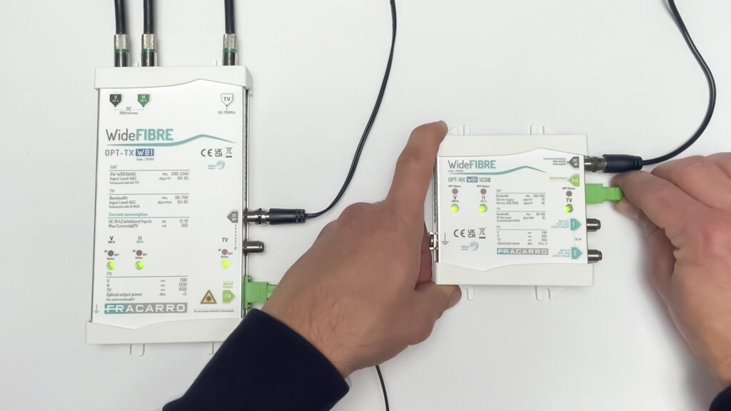 Questi vantaggi non tolgono nulla alla qualità dell’impianto che, anzi, risulta di livello molto elevato, con la possibilità di utilizzare la fibra ottica come vettore per realizzare lunghe tratte senza perdita di segnale. Un ulteriore vantaggio risiede nel fatto che la soluzione ottica wideband Fracarro è compatibile con televisori e decoder tradizionali in tecnologia SCD2 (dCSS), SCR e Legacy».