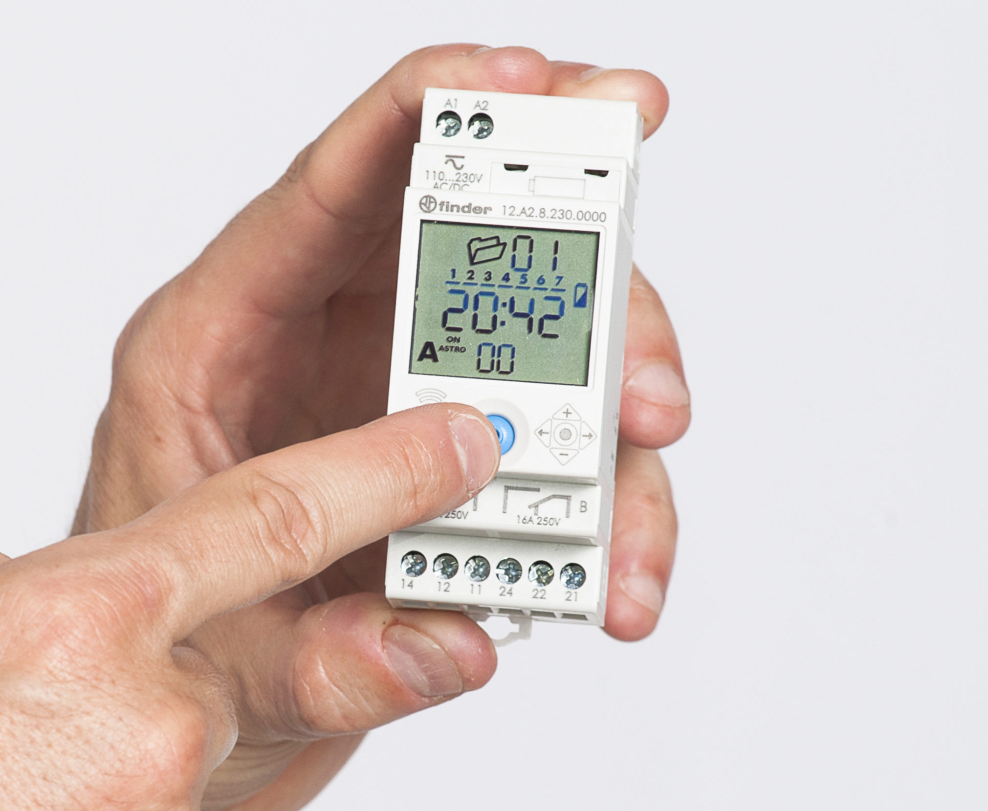 interruttore orario astronomico FinderL’azienda Finder di Almese (TO) propone 12.A2, interruttore orario astronomico con modalità di programmazione classica e “smart” con tecnologia NFC.