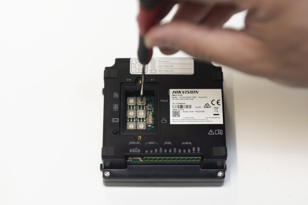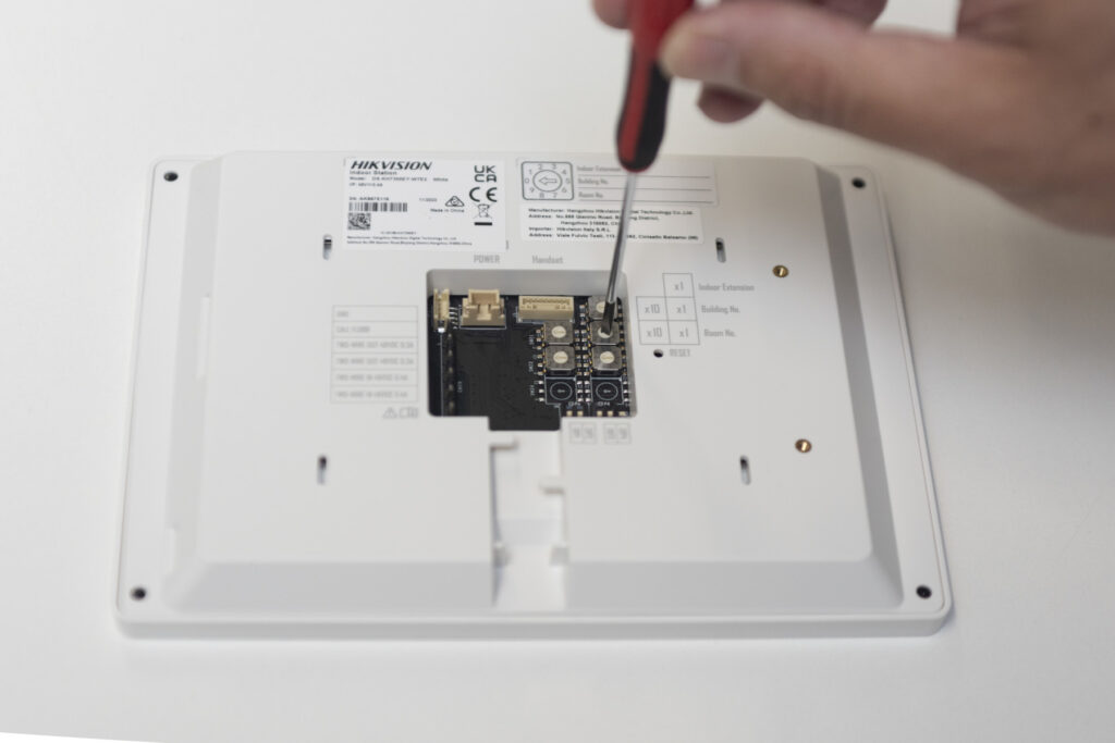 La configurazione è realmente “plug&play”, in quanto avviene tramite gli appositi rotary switch posti sul retro dei moduli che compongono il sistema. Per la manutenzione, lo stato della connessione del posto interno con l’impianto videocitofonico può essere controllato dalla postazione stessa o dal derivatore di piano, permettendo di individuare in tempi rapidi eventuali malfunzionamenti.