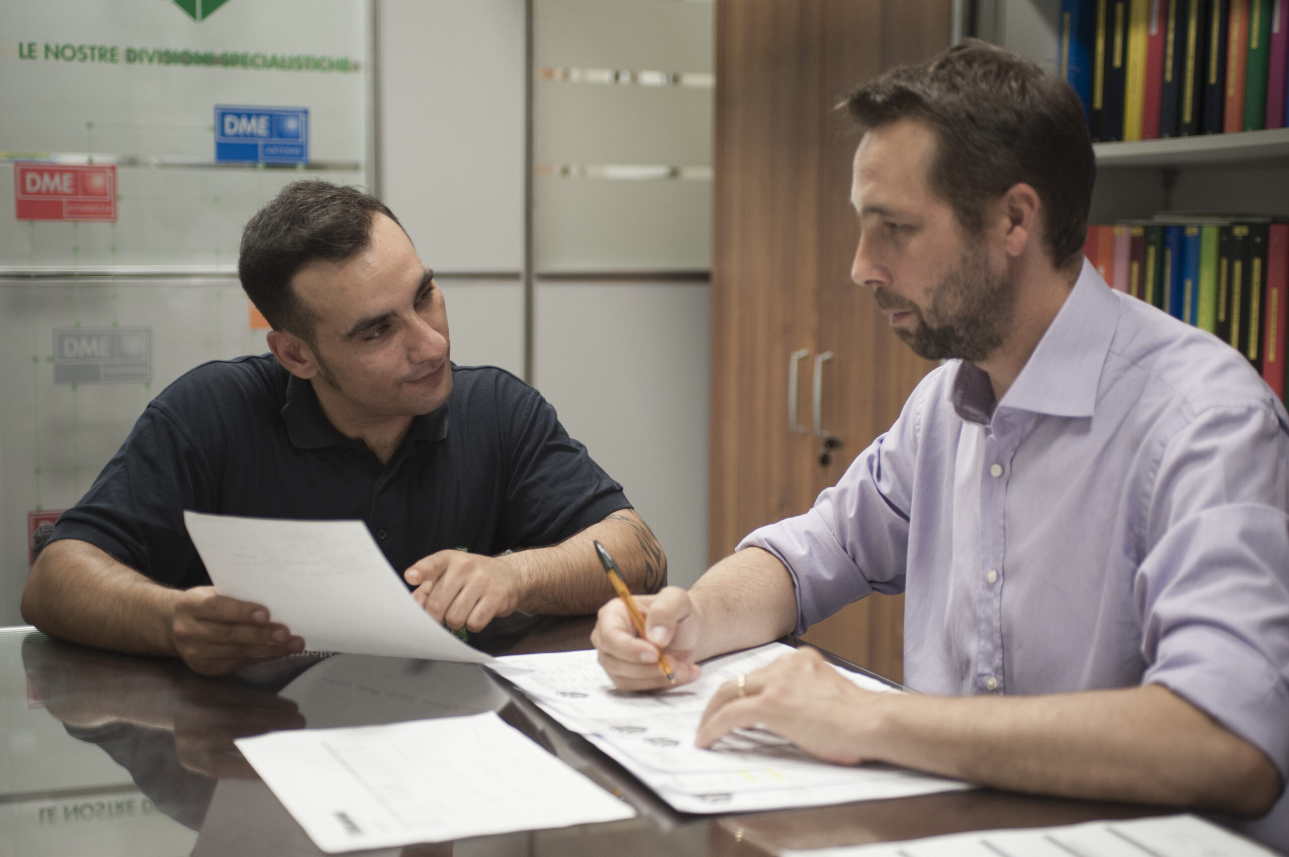 A sinistra Raul Cassa (addetto vendite banco), a destra Luca Cilloni (responsabile vendite della sede) della D.M.E.