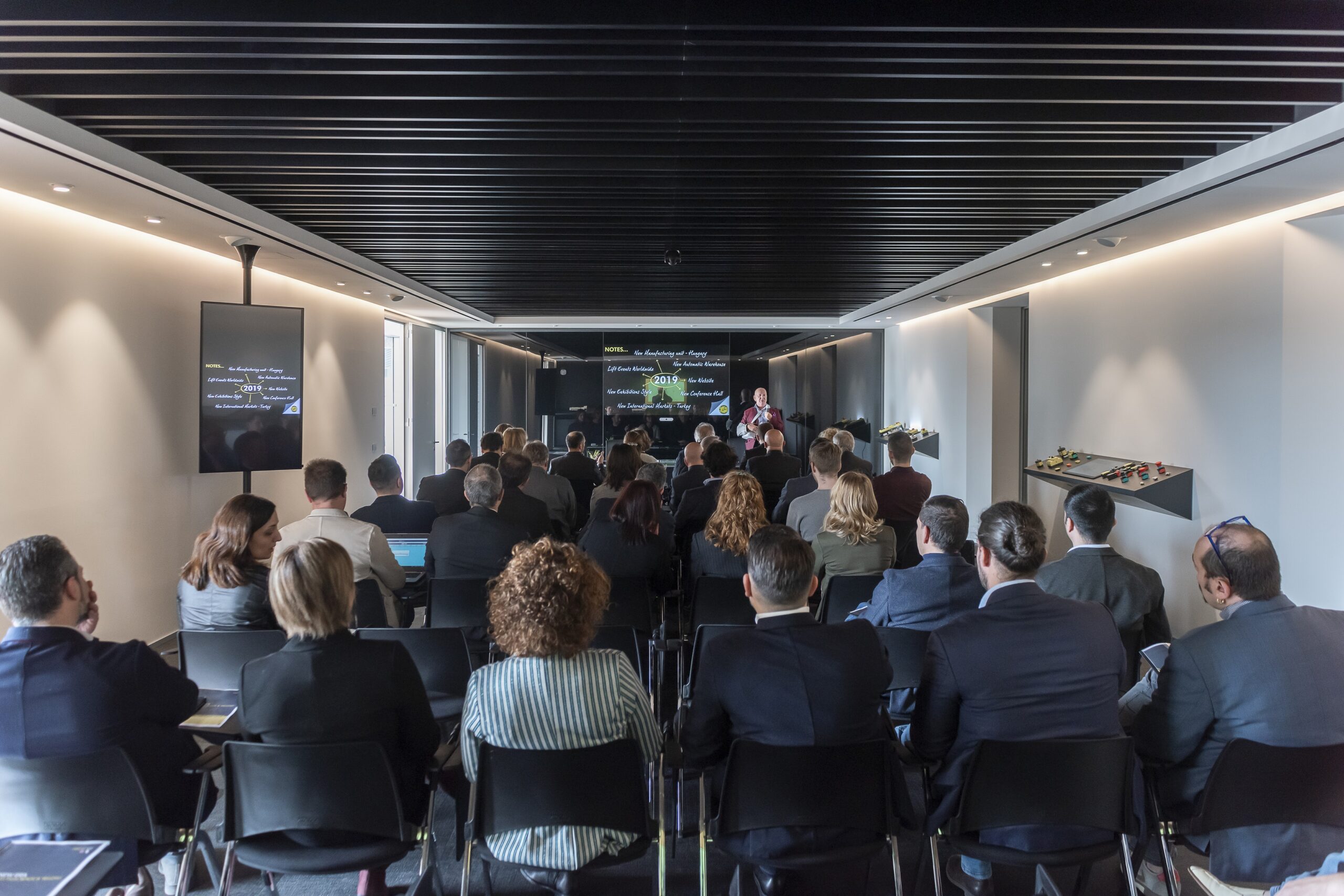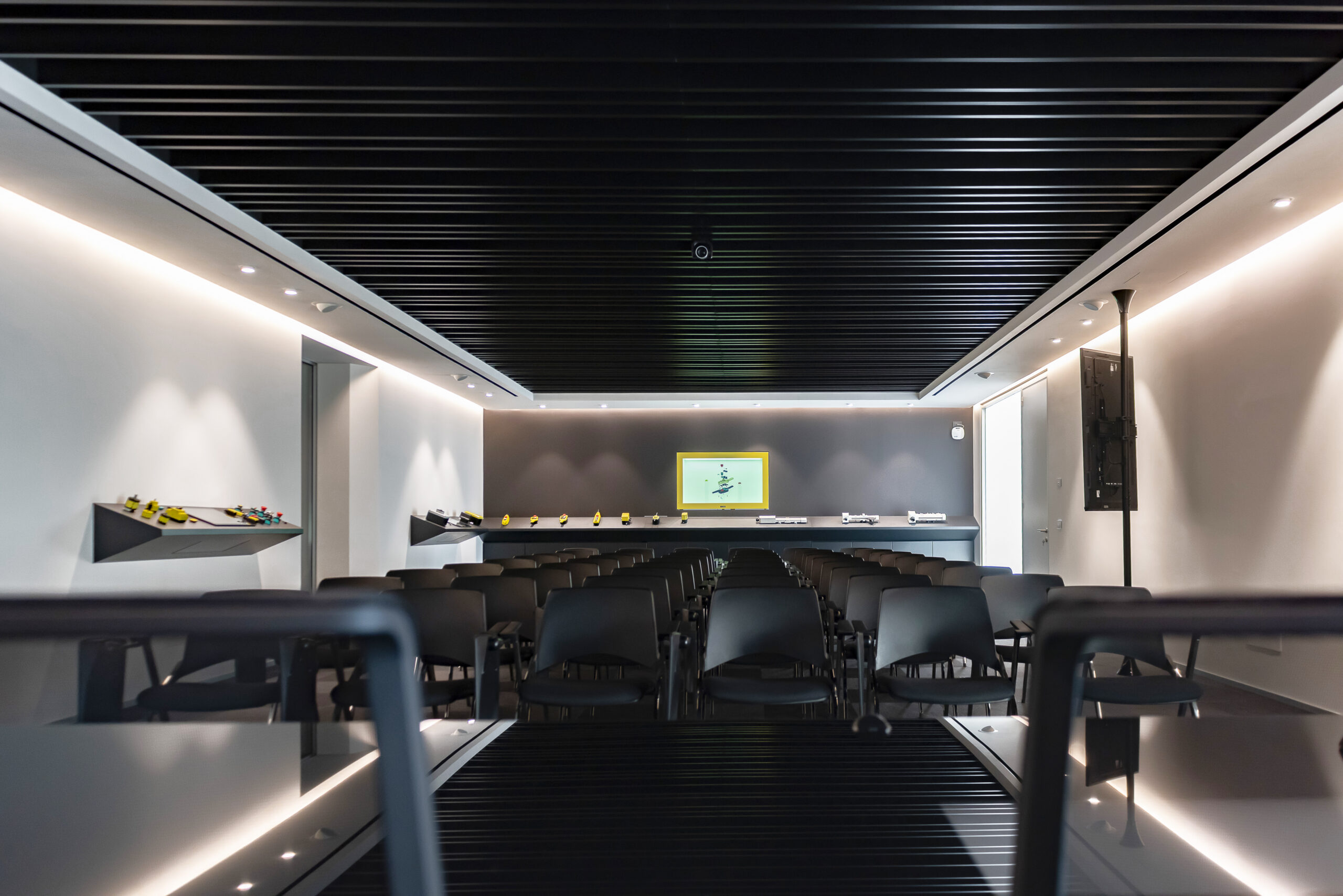 Nella stessa logica di crescita, presso la sede italiana è stata allestita una nuova sala convegni che rappresenta chiaramente la volontà di comunicazione e connessione che agevola il dialogo con il mondo, grazie alla dotazione tecnologica all’avanguardia. Tutte le strumentazioni multimediali, dal monitor principale, alla whiteboard, dalla webcam fino alle penne elettroniche, dai QR code interattivi alle apposite APP per cellulari, permettono al relatore d’interagire agevolmente con la platea in sala e con tutti gli eventuali utenti esterni collegati online. Al suo interno, due alte vetrate terra-cielo collegano direttamente la sala al nuovo magazzino automatizzato, creando un’atmosfera futuristica. Una finestra sul mondo per dialogare con clienti, fornitori e con tutte le altre strutture Giovenzana nel resto del mondo.