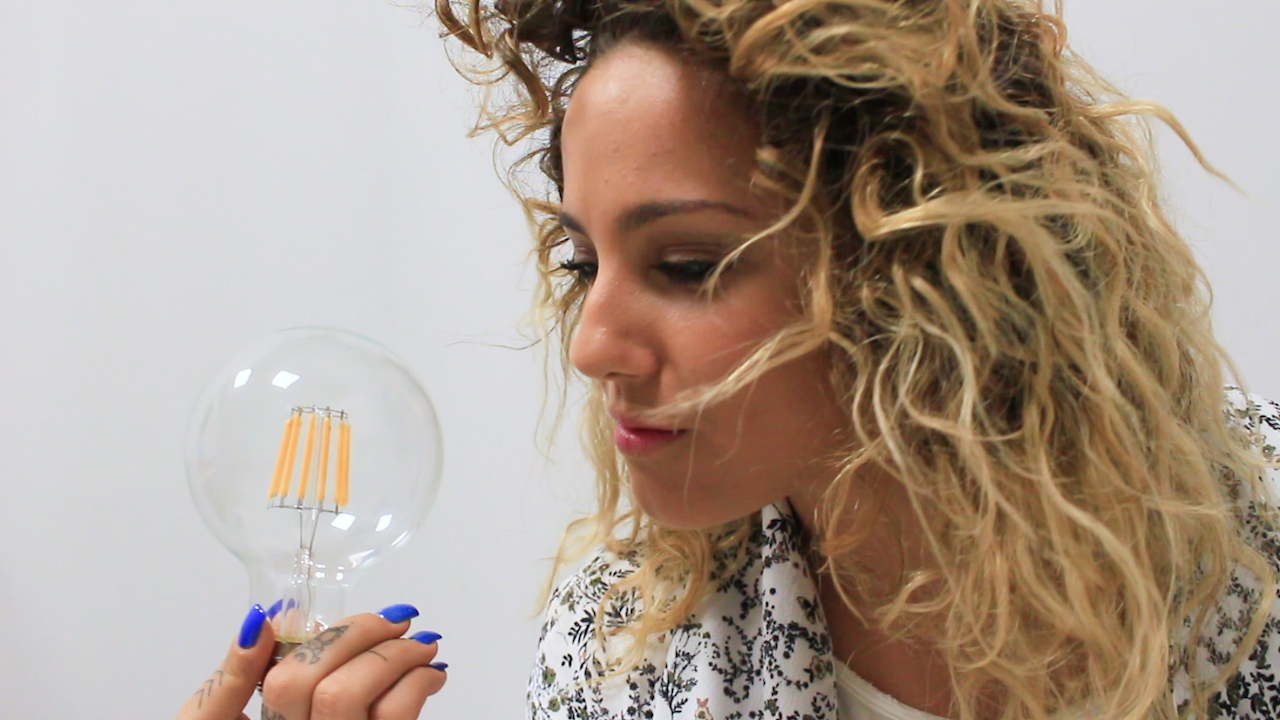 La ragazza con la lampadina..a filamento LED (courtesy: SMS Sistemi e Microsistemi)