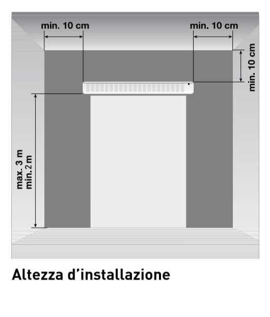 Si inserisce come serie “light” in una più ampia gamma professionale che parte dalla più semplice applicazione di un piccolo ingresso, fino al prodotto per uso industriale che permette spinte d’aria fino a 5 m. La nostra nuova serie CAF si compone di tre modelli: 900, 1200 e 1500 mm di larghezza per un’altezza di 220 mm ed una profondità di 215 mm, per installazioni fino a 3 m di altezza. Il controllo remoto gestisce l’accensione e lo spegnimento dell’unità e 2 velocità di funzionamento ed è presente un comando a infrarosso sempre più richiesto in questo tipo di applicazione.