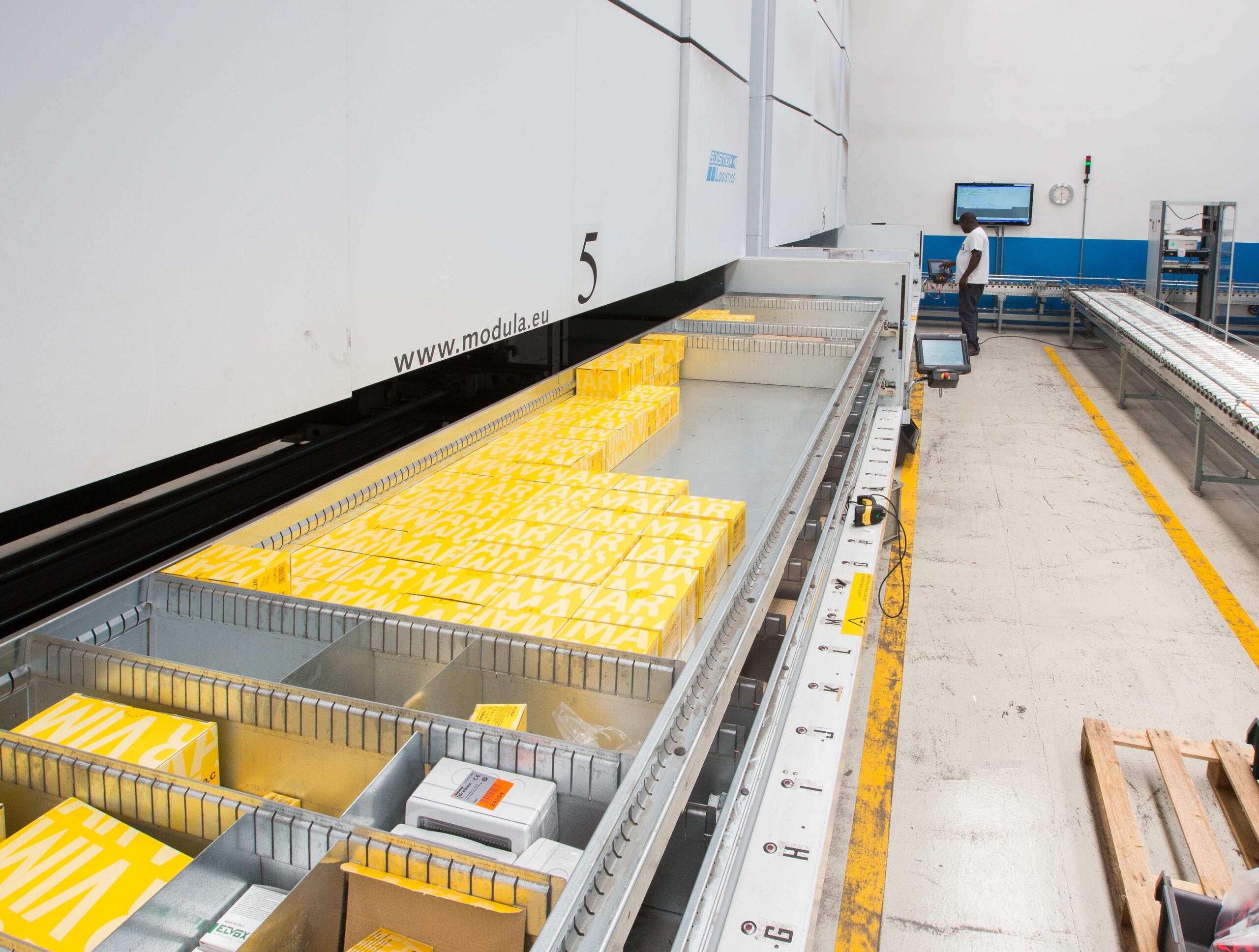 Sì, perché l’essenziale per un CEDI efficiente è la gestione informatica dei flussi, che avviene sia in ingresso sia in uscita: lo stesso prodotto si può trovarsi in zone diverse. Se l’ordine è di pochi pezzi il sistema lo processa nel magazzino verticale, ma se è di 200-300 pezzi, viene prelevato nel porta pallet, molto più grande. Il software svolge molte funzioni operative, indica ad esempio la migliore ubicazione di un prodotto in funzione del suo valore e della sua rotazione e consente anche precise analisi di produttività.