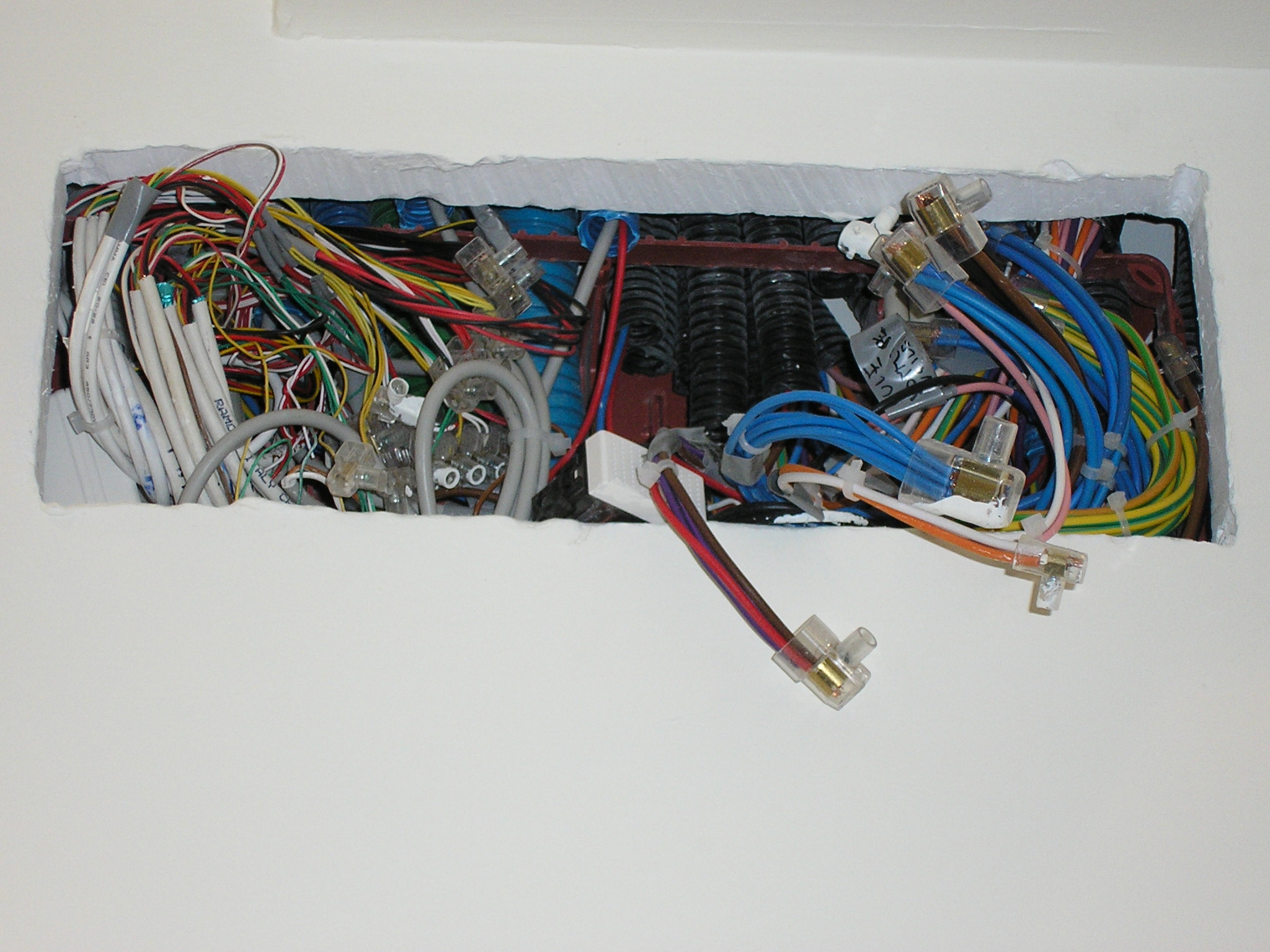 La promiscuità dei circuiti con conduttori a isolamento diverso è sempre un punto estremamente critico nelle cassette di distribuzione.