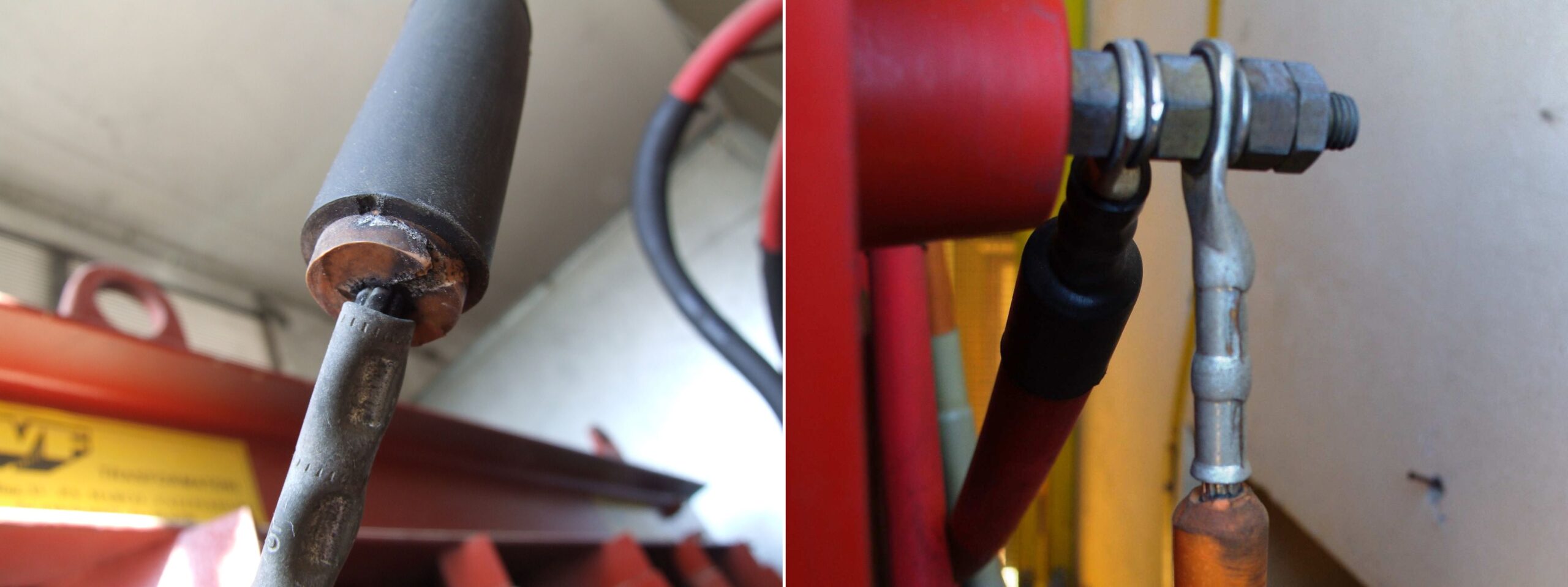 Un terminale sporco, come quello presente nelle foto, a lungo andare può essere causa di un principio deterioramento dell’isolante con conduzione superficiale della tensione che può portare all’intervento delle protezioni di guasto verso terra o nella condizione peggiore a un corto circuito, con conseguente fuori servizio della cabina.