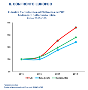 Nel 2018 i settori di Anie hanno generato oltre il 3% del Pil, rappresentato il 6% del fatturato aggregato del manifatturiero nazionale e il 7% delle esportazioni.