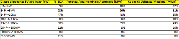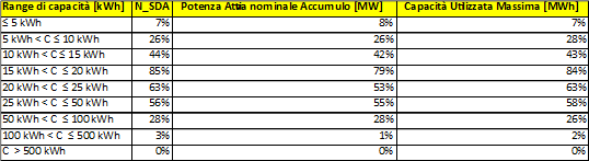 Al 31 marzo 2022 risultano installati ben 95.869 sistemi di accumulo (SdA), per una potenza complessiva di 527 MW e una capacità massima di 977 MWh. A questi si aggiungono gli impianti di Terna per complessivi 60 MW e 250 MWh.