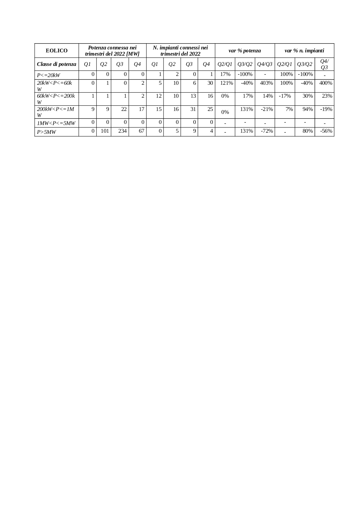 Risultano inoltre per l’eolico: