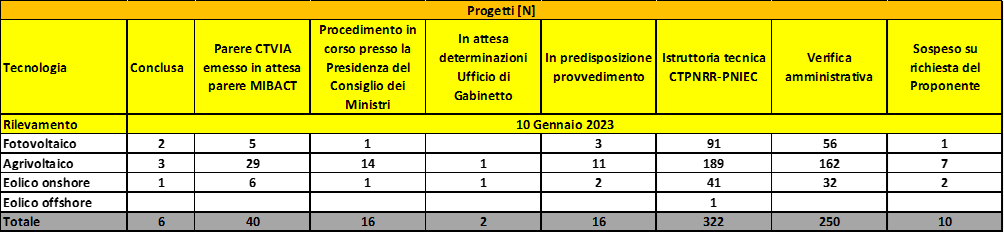 Focalizzando l’attenzione sui progetti FER in capo alla Commissione Tecnica VIA PNRR/PNIEC emerge quanto segue: