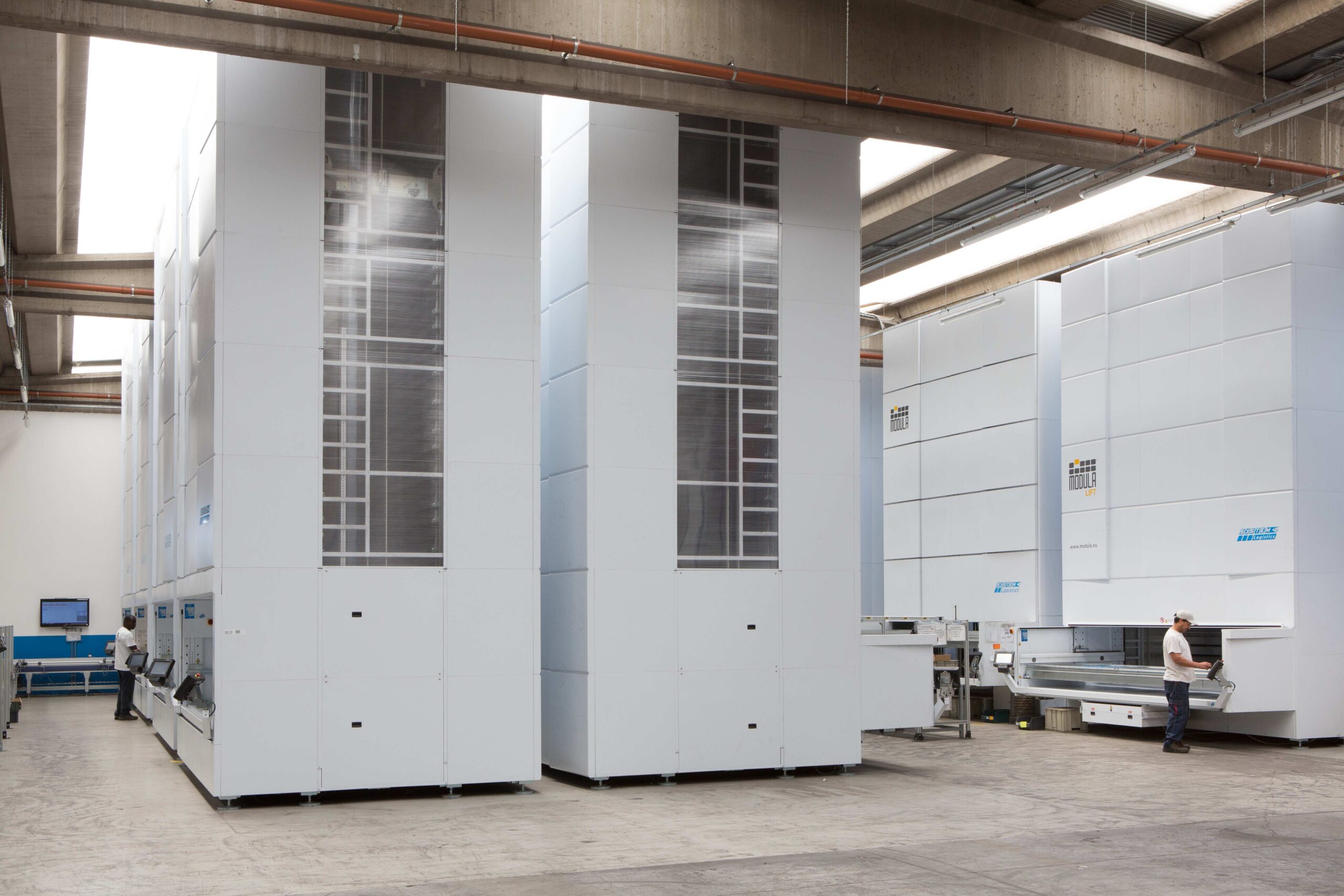 Sono due, la prima è quella del settore dei cavi, dove si trovano 2200 bobine, due macchine per il taglio automatizzato e la macchina traslatrice per il trasporto. La seconda area è quella dei 12 magazzini verticali, 49 piani per 750 Kg ciascuno, che gestiscono i prodotti di piccole dimensioni e rotazione medio-alta, in sostanza il cuore del nostro mondo, quei 7-8000 articoli di gamme civili, quadretti e cassette di derivazione che devono avere disponibilità immediata.
