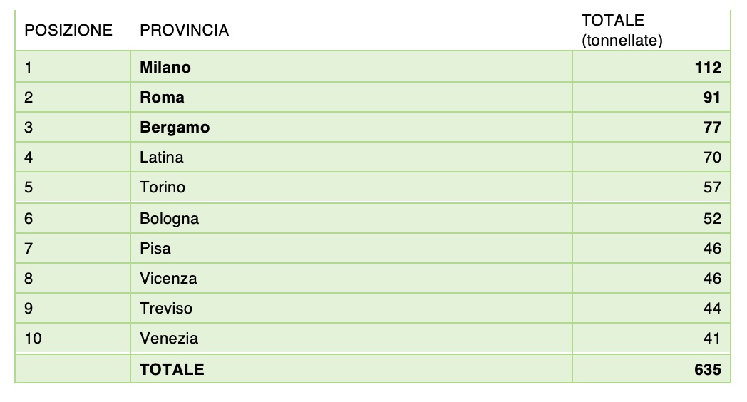 Per quanto riguarda le province, Milano (112 tonnellate), Roma (91) e Bergamo (77) sono quelle che hanno avviato a riciclo il maggior numero di sorgenti luminose esauste, totalizzando insieme il 17% della raccolta complessiva di lampadine del Consorzio. Dati positivi anche per Pisa, che passa quest’anno dalla quattordicesima alla settima posizione con 46 tonnellate, e per Napoli, che si conferma prima tra le province del Sud Italia, con 30 tonnellate conferite.