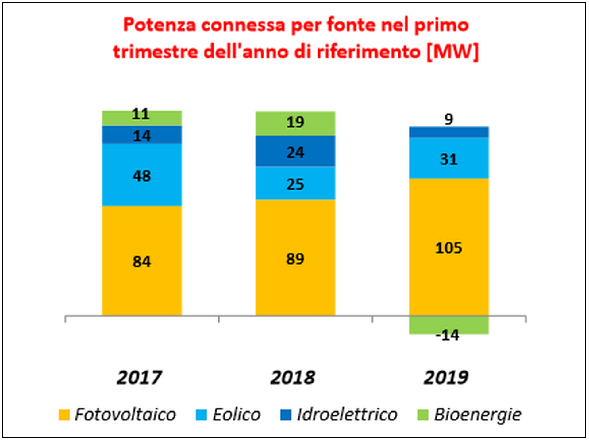 Il fotovoltaico raggiunge complessivamente 105 MW, +18% rispetto allo stesso periodo del 2018, con il mese di marzo 2019 che conferma il trend mensile delle installazioni con 39 MW. Le detrazioni fiscali per il cittadino hanno fruttato un aumento del numero di unità di produzione connesse (+17%).
