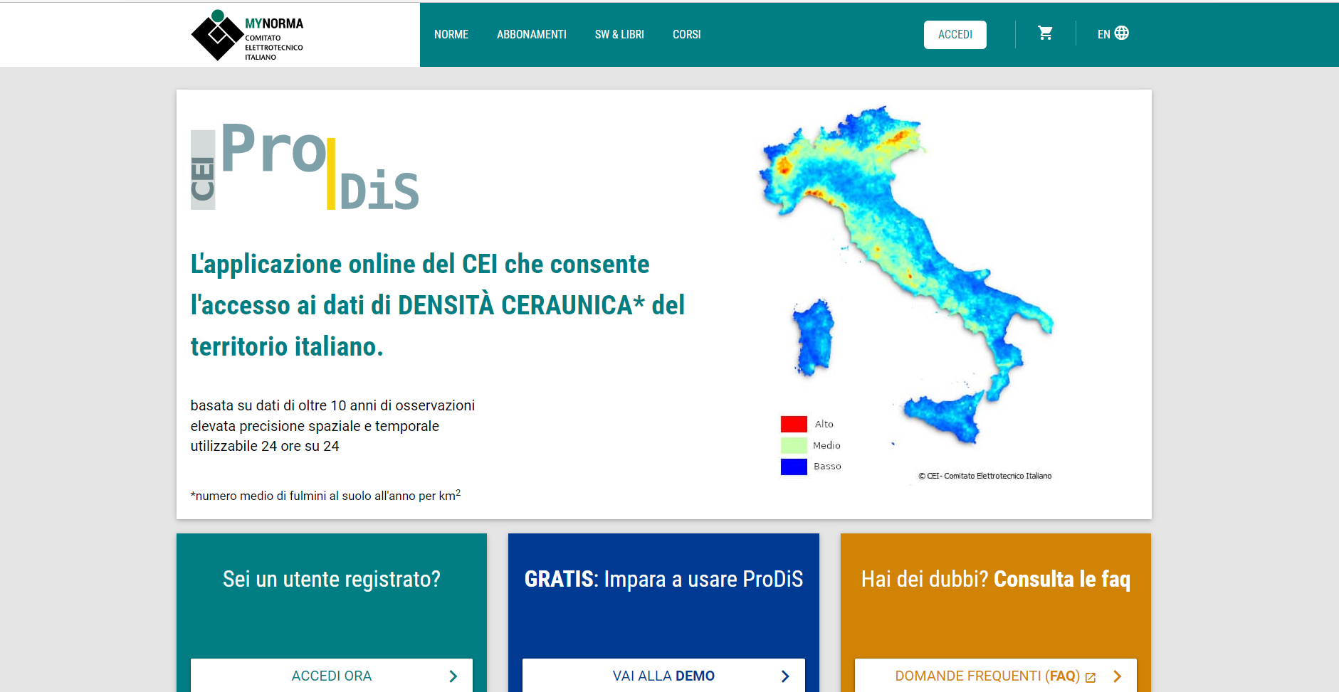 Il CEI – Comitato Elettrotecnico Italiano ha recentemente aggiornato ProDiS™, l’applicazione online che consente l’accesso ai dati di densità ceraunica – ovvero il numero medio di fulmini al suolo all’anno per km2 (NG) – per il territorio italiano.
