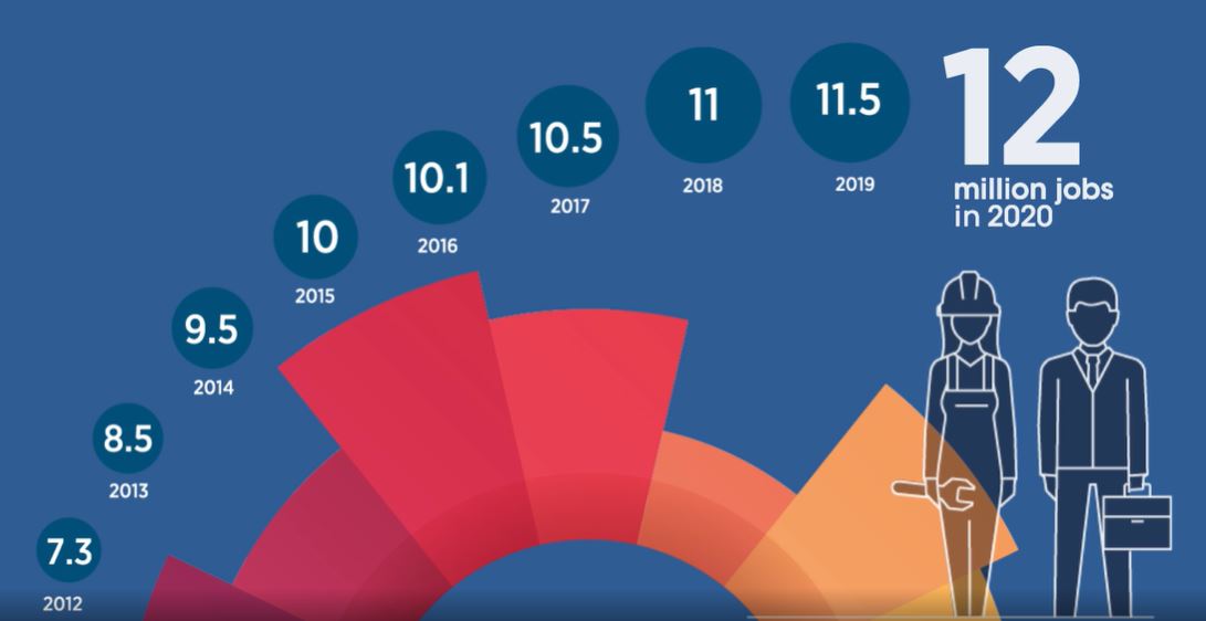 Dall’ottava edizione del Renewable Energy and Jobs: Annual Review 2021, emerge che, ad oggi, i lavoratori a livello globale nel campo delle energie rinnovabili sono 12 milioni, numero in aumento rispetto agli 11,5 milioni del 2019.
