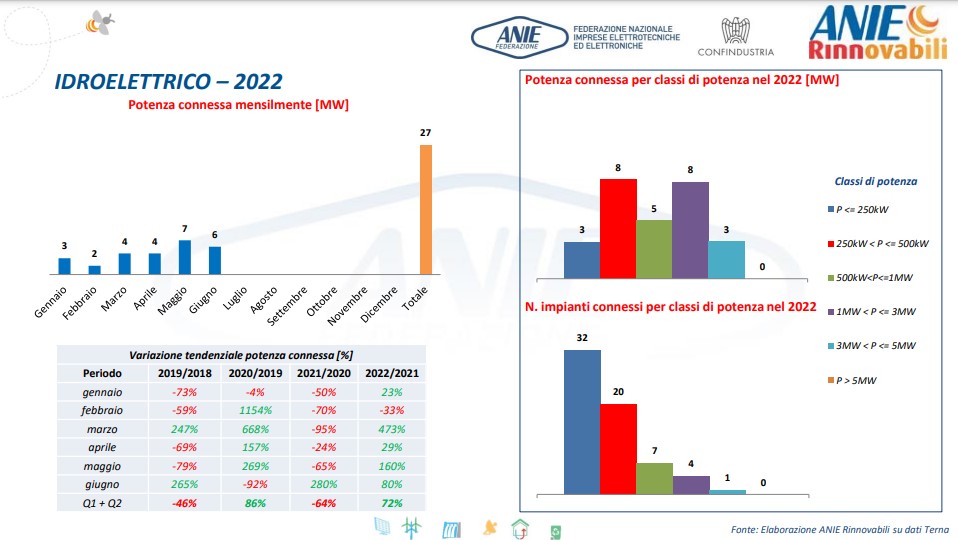 • 27 MW per idroelettrico (+72%).