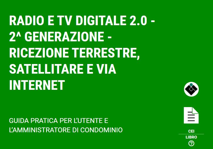 Pubblicato lo scorso 3 settembre il nuovo documento divulgativo del CEI – Comitato Elettrotecnico Italiano dal titolo “Radio e Tv digitale 2.0” dedicato a utenti e amministratori condominiali per guidarli al passaggio verso la nuova generazione di digitale terrestre DVB-T2. Tale documento ha l’obiettivo di presentare e spiegare le caratteristiche tecniche dei dispositivi che permetteranno la ricezione dei contenuti TV su più piattaforme, assicurando migliore qualità di immagine e suono.