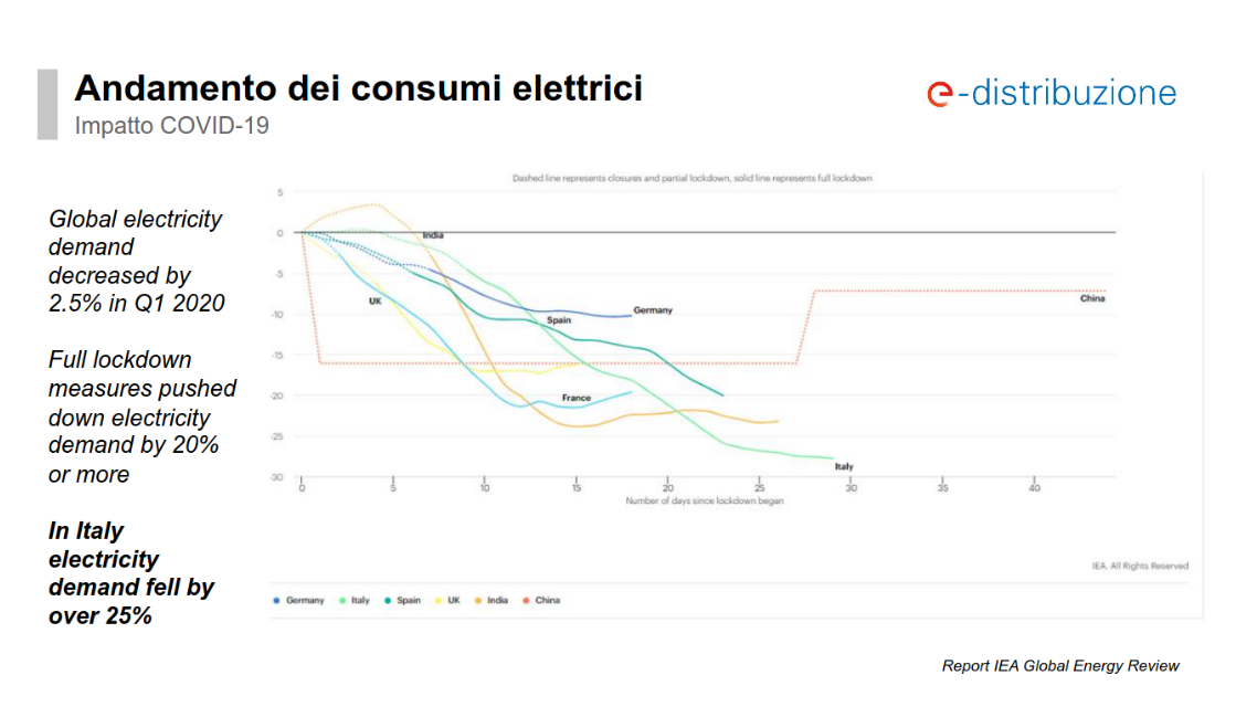 L’andamento dei consumi elettrici a seguito dell’impatto da Covid-19. Fonte E-distribuzione