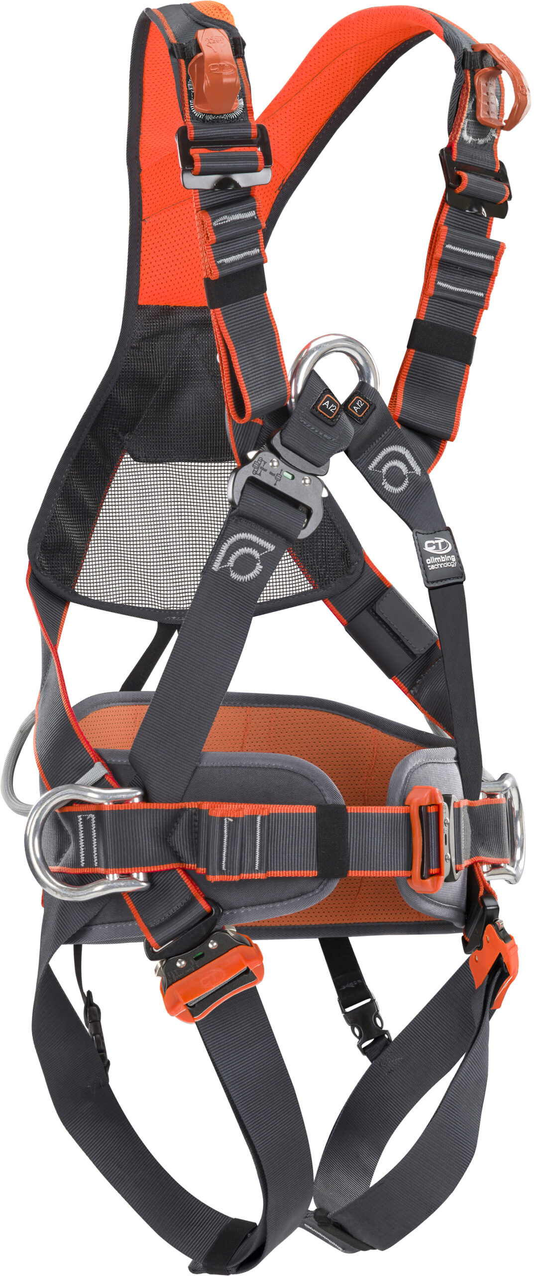 Work Tec 140 è dotata di due punti di attacco anti caduta, sternale e dorsale (EN 361:2002), ed è sviluppata per lavoratori di peso fino a 140 kg (materiale incluso). Usata in abbinamento alla cintura Waist Tec, sempre di Climbing Technology e venduta separatamente, diventa un’ottima scelta per il lavoro in posizionamento. Oltre all’attacco sternale, in lega leggera, e a quello dorsale, in acciaio, si aggiungono i due laterali (EN 358:2018) che offrono la possibilità, in caso di non utilizzo, di essere ripiegati verso l’interno, così da non intralciare i movimenti dell’operatore. Facile e veloce da indossare, l’attrezzatura presenta un sistema di chiusura sternale Easy-ring, semplice da aprire e chiudere anche indossando i guanti, cosciali con fibbie a sgancio rapido ed è caratterizzata da spallacci imbottiti e sagomati che evitano sfregamenti sul collo. Le due fettucce orizzontali presenti sulle bretelle sono destinate all’inserimento di Hook Rest, un supporto, venduto separatamente, dove è possibile posizionare i connettori di un cordino anticaduta.