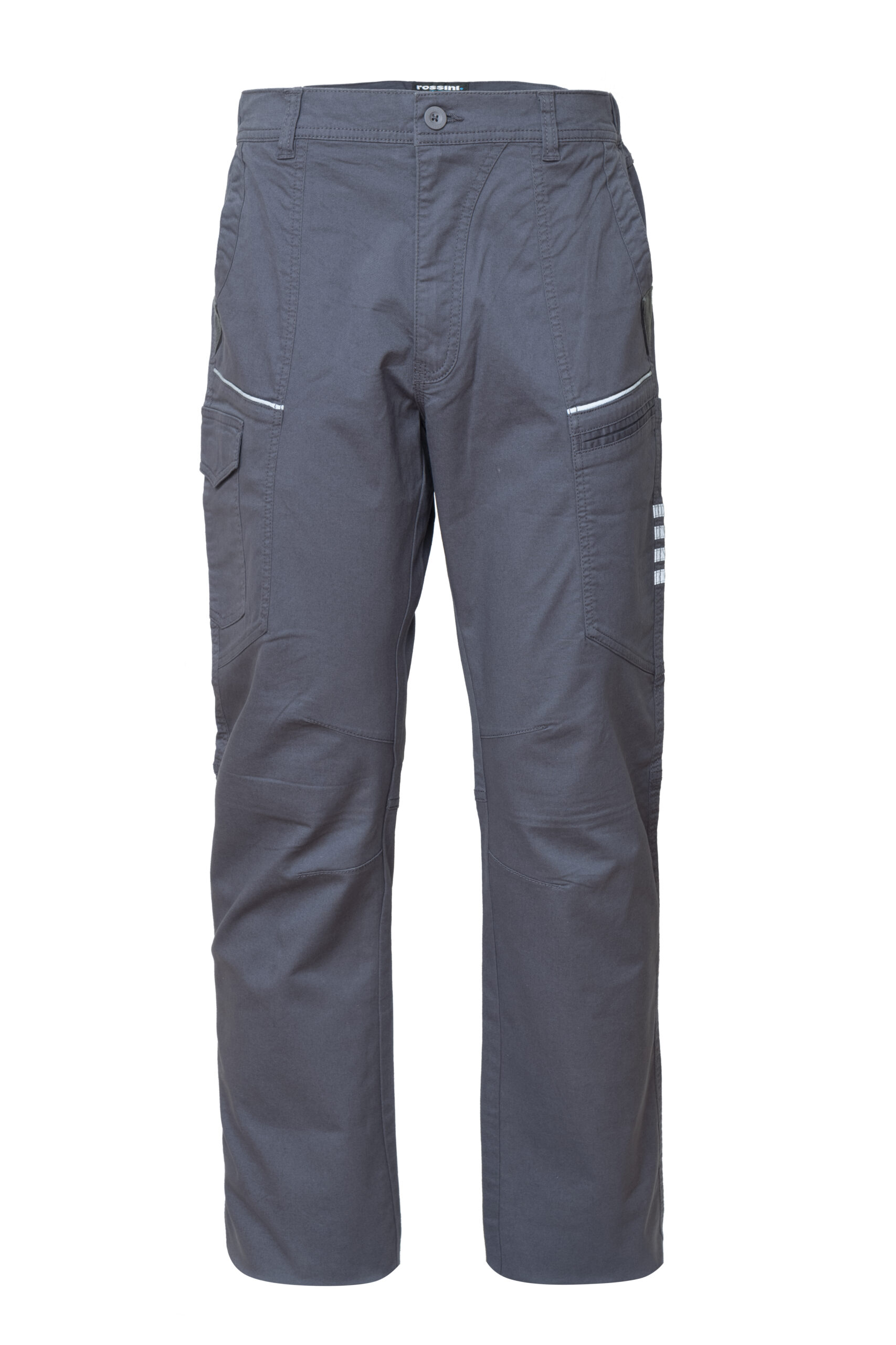La linea R-Stretch di Rossini è stata ideata per accompagnare i professionisti in ogni momento della giornata lavorativa. Comfort e sicurezza per una collezione realizzata in cotone twill elasticizzato, che garantisce vestibilità e libertà di movimento. I pantaloni lunghi da lavoro multitasca e multistagione R-Stretch sono in cotone twill elasticizzato 340 gr con elastici laterali e passanti in vita, chiusura a zip e bottone. Sono caratterizzati da due tasche anteriori con inserto di rinforzo a rilievo e fodera logata; inoltre, i pantaloni hanno una tasca davanti nella parte inferiore e una tasca laterale porta metro sulla gamba sinistra, oltre a una tasca laterale chiusa con aletta e velcro sulla gamba destra e due tasche posteriori applicate. I pantaloni sono realizzati con dettagli di tessuto a spina di pesce sulle tasche davanti e vicino al porta-metro, triple cuciture al cavallo e ginocchia sagomate. Infine, sono presenti profili orizzontali nel taglio delle tasche anteriori e 4 bande su tasca porta metro in tessuto rifrangente per garantire un’elevata sicurezza in ogni luogo di lavoro.