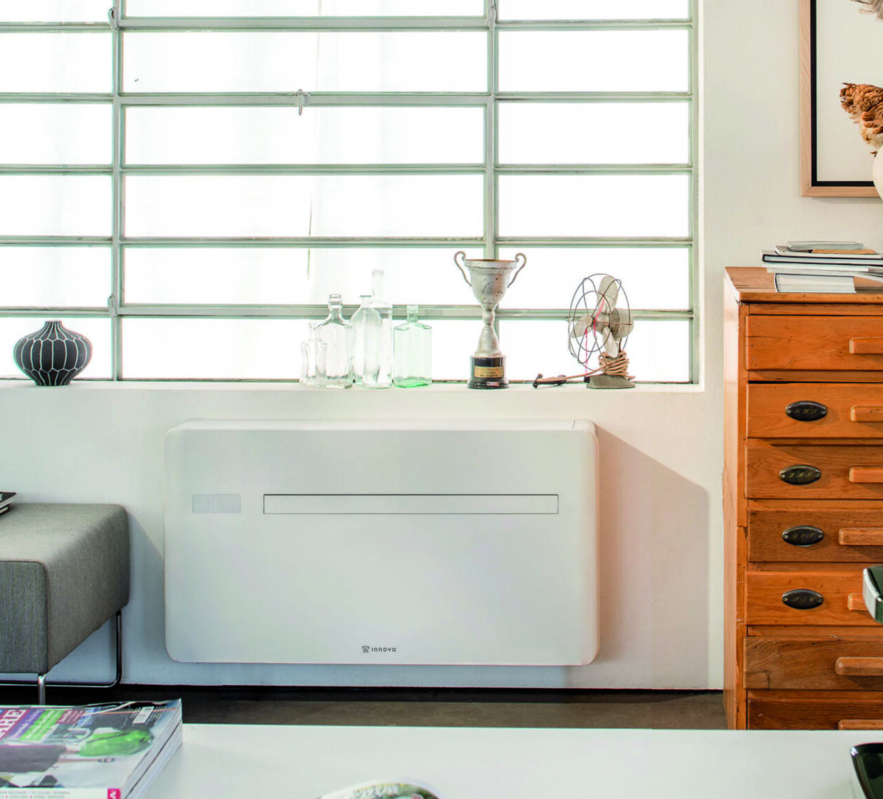 climatizzazione2.0 di Innova è un climatizzatore senza unità esterna in classe di efficienza energetica A+, che riunisce nel suo corpo interno sia la parte evaporante, sia la parte condensante, solitamente divise in due distinte unità (interna ed esterna). Disegnato da Luca Papini con soli 16 centimetri di profondità, 2.0 di Innova rappresenta la soluzione ideale in tutti quei contesti dove è necessario mantenere intatte le facciate degli edifici. Sono molteplici le proposte dell’azienda: configurazione orizzontale o verticale, versione ELEC con riscaldatore elettrico di integrazione, versione FCU con fan coil integrato, versione H2O che utilizza l’acqua della falda o della rete o dell’impianto ad anello come sorgente termica. Le grandezze proposte (9HP – 10HP – 12HP – 15HP) si adattano alle specifiche necessità della climatizzazione per raggiungere il miglior compromesso tra comfort ambientale ed efficienza.